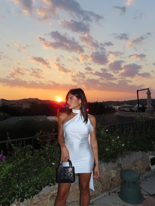 Abito scollo asimmetrico fiocco