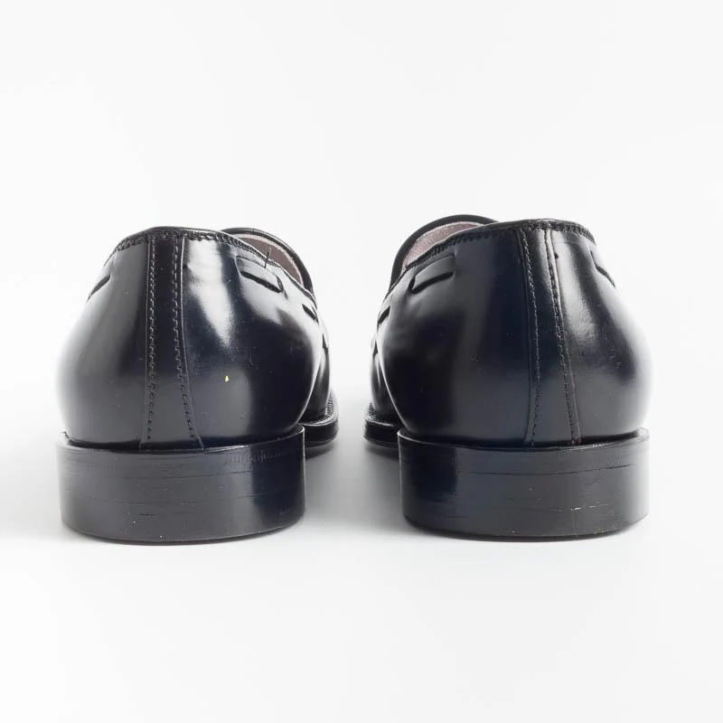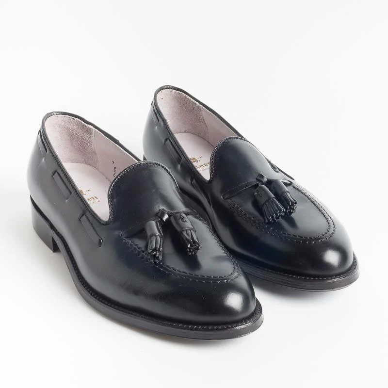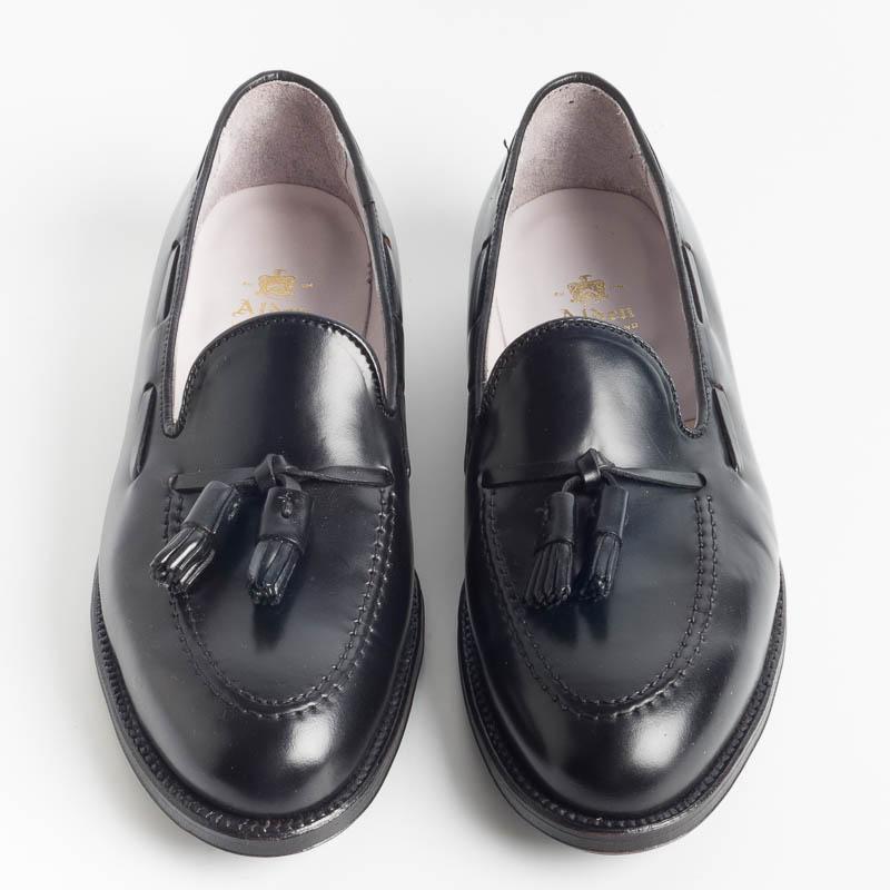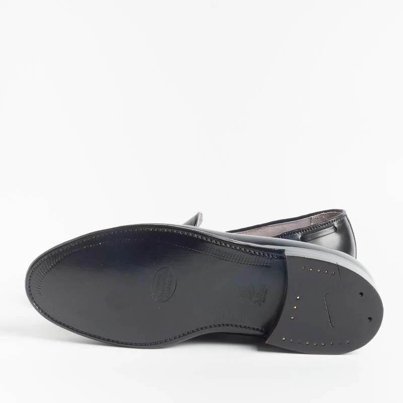 Mocassino con nappine di Alden realizzato in culatta di cavallo Horween di colore nero. Fondo con suola in cuoio di colore nero. Lavorazione goodyear. Rivestimento interno in pelle.