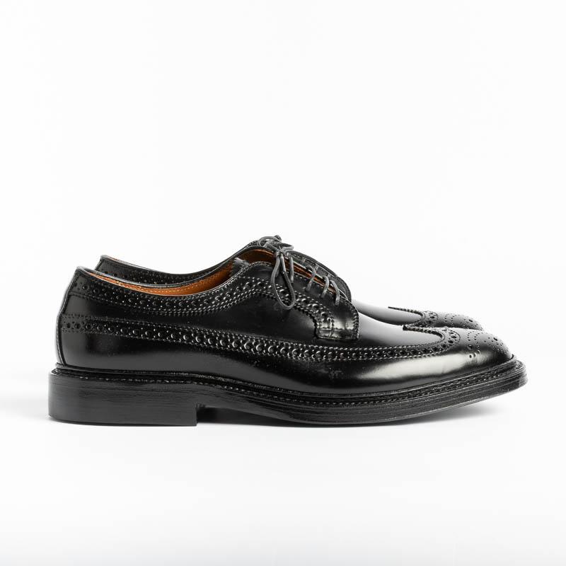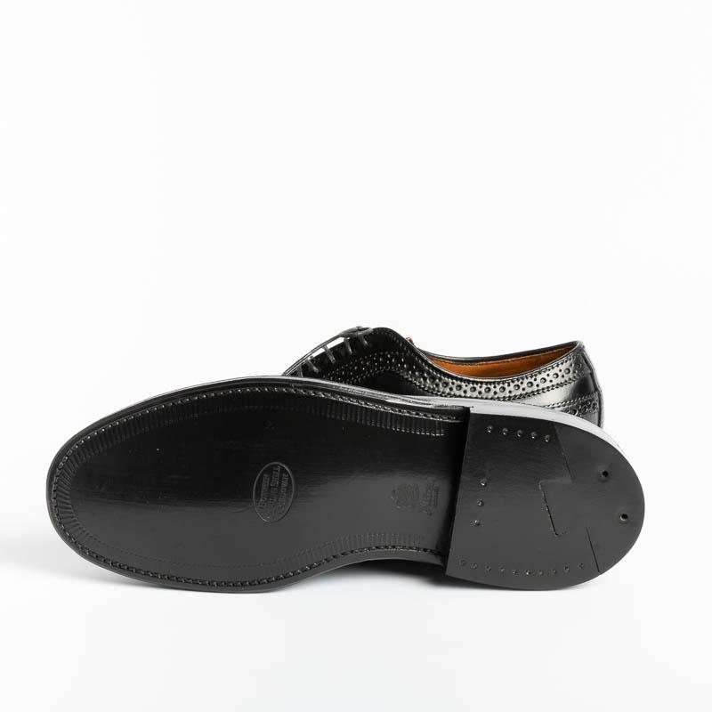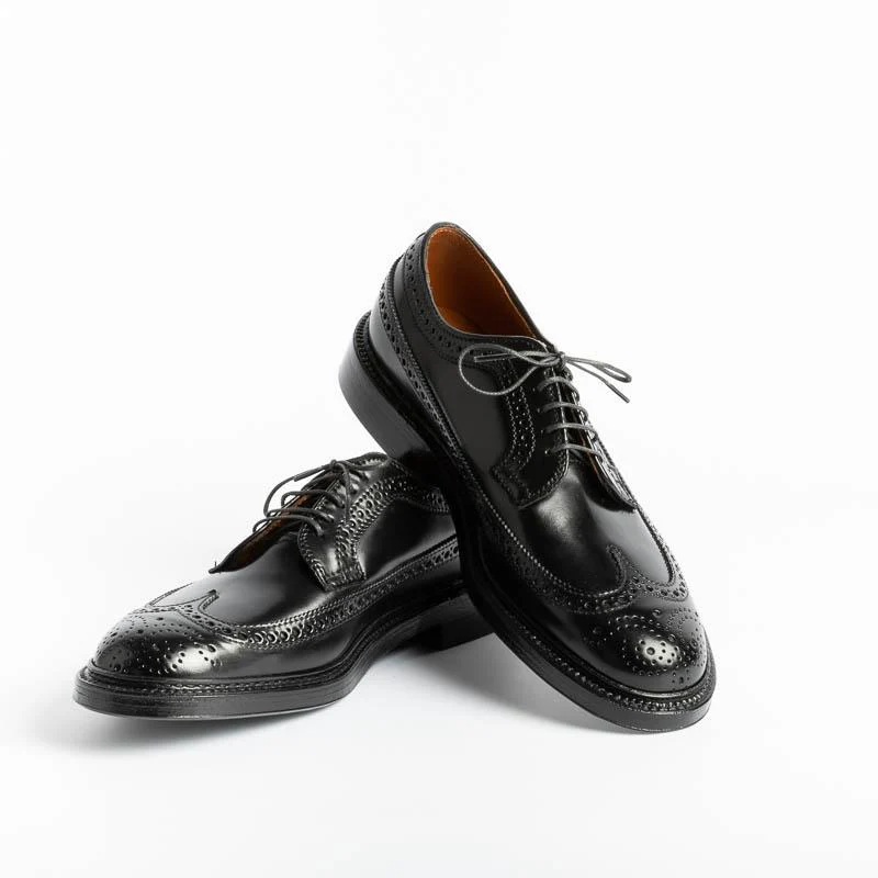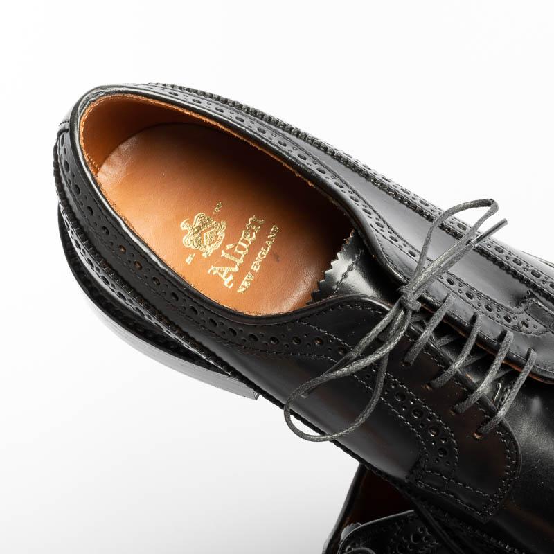 Derby ALDEN in pelle Cordovan colore nero, elegante e ricca decorazione duilio, lavorazione Goodyear, doppia cucitura sul guardalo della calzatura, suola in cuoio. Morbidi lacci di cotone cerato in nuance. Forma Barrie.