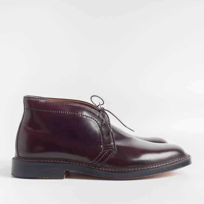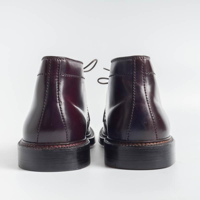Polacco di Alden due fori realizzato in esclusiva pelle di cavallo (Horween) di colore bordeaux, lavorazione goodyear, doppia suola in cuoio, guardolo con doppia cucitura.