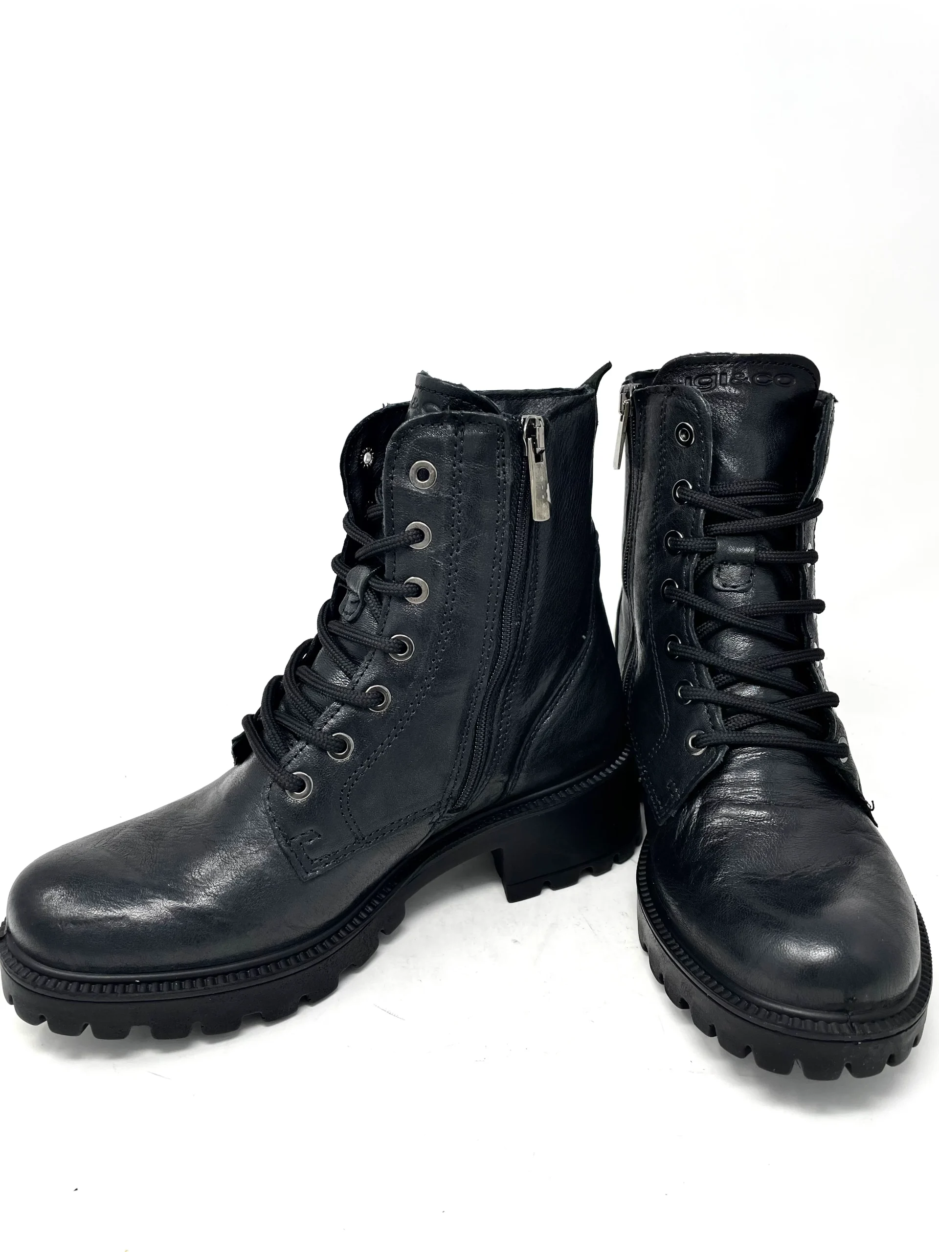 Questi anfibi in pelle effetto vintage nero -4663500 sono progettati per durare. La tomaia รจ in pelle e tessuto e la suola รจ in gomma: combinazione perfetta per garantire comfort e resistenza. I lacci e la zip semplificano la calzata. Ideale per chi ama un look classico e di tendenza.