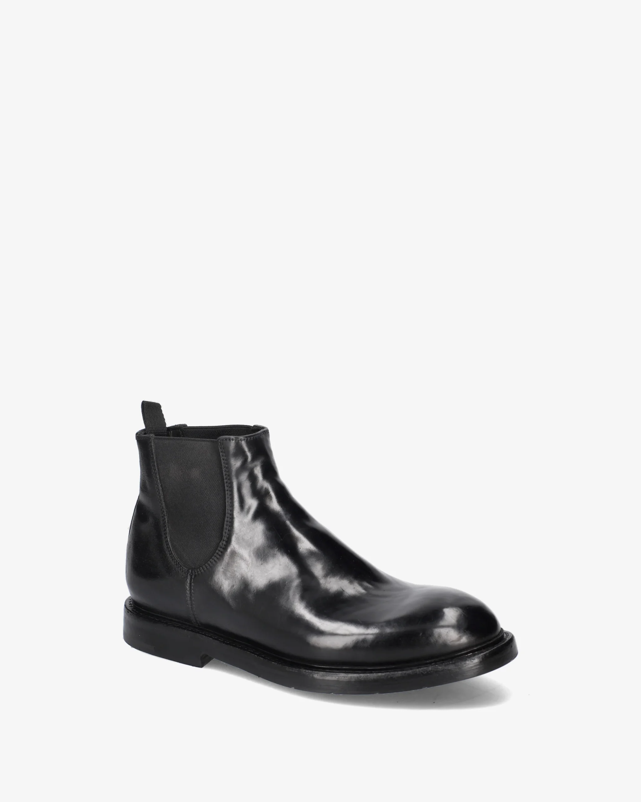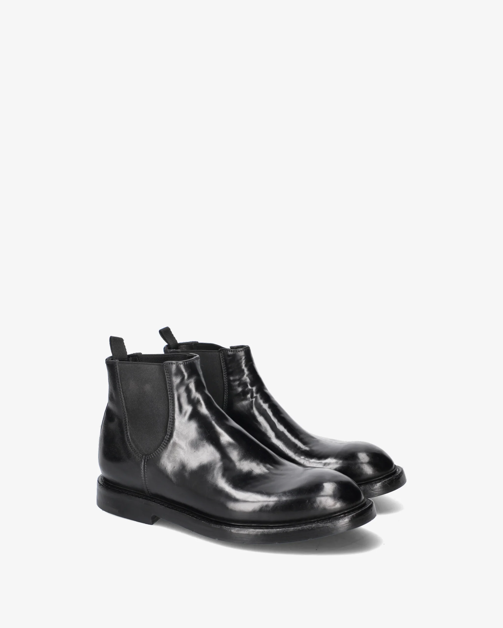 Classic tapered lines for these ankle boots in Cordovan, an unmistakable feature of the brand. Characterized by side elastics and a leather sole with rubber heel counter.