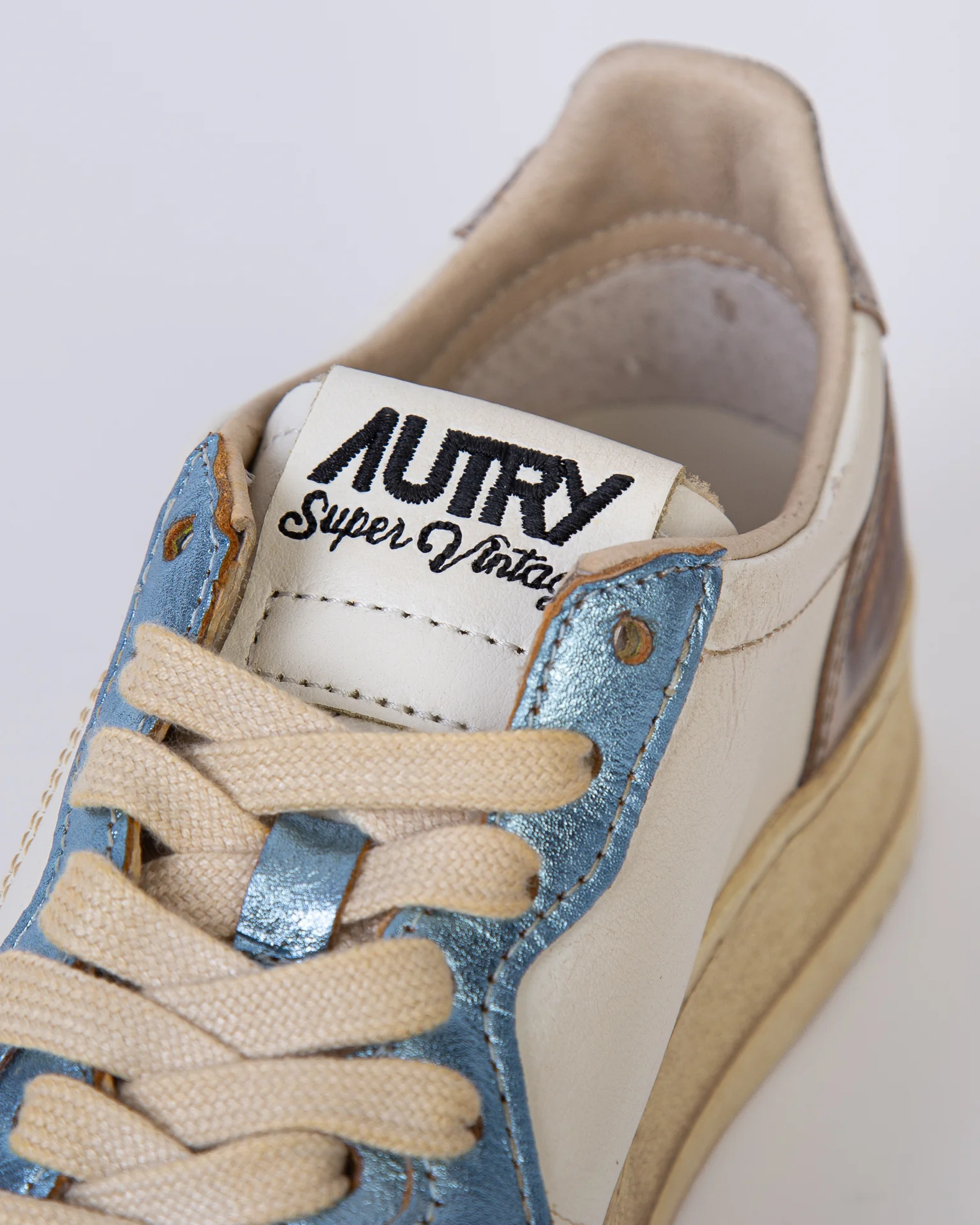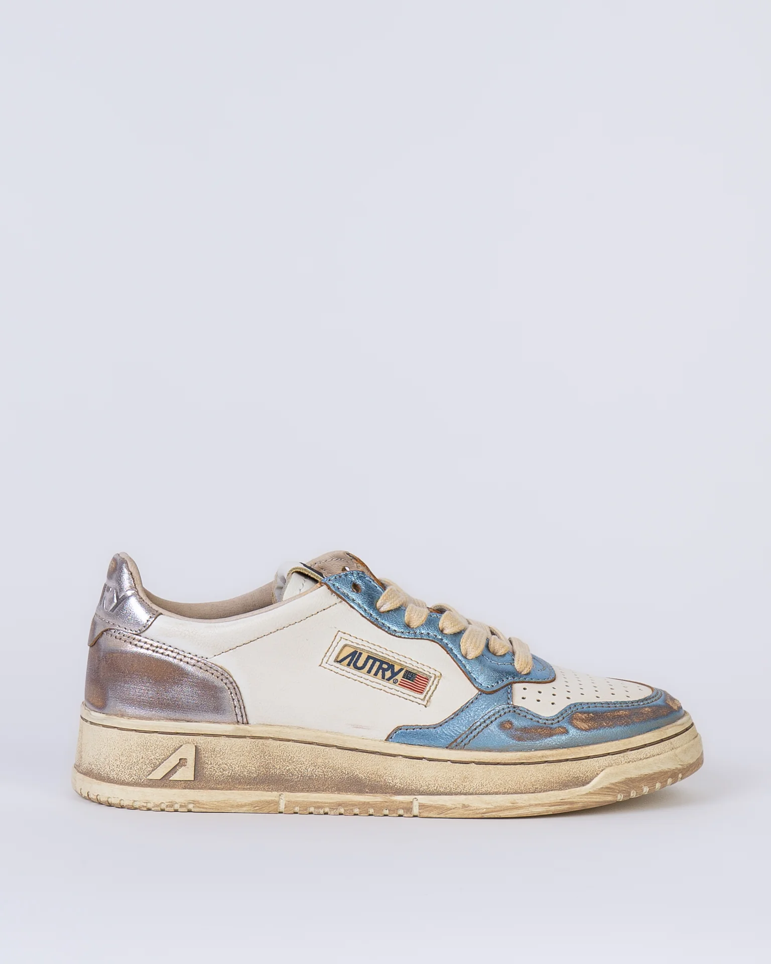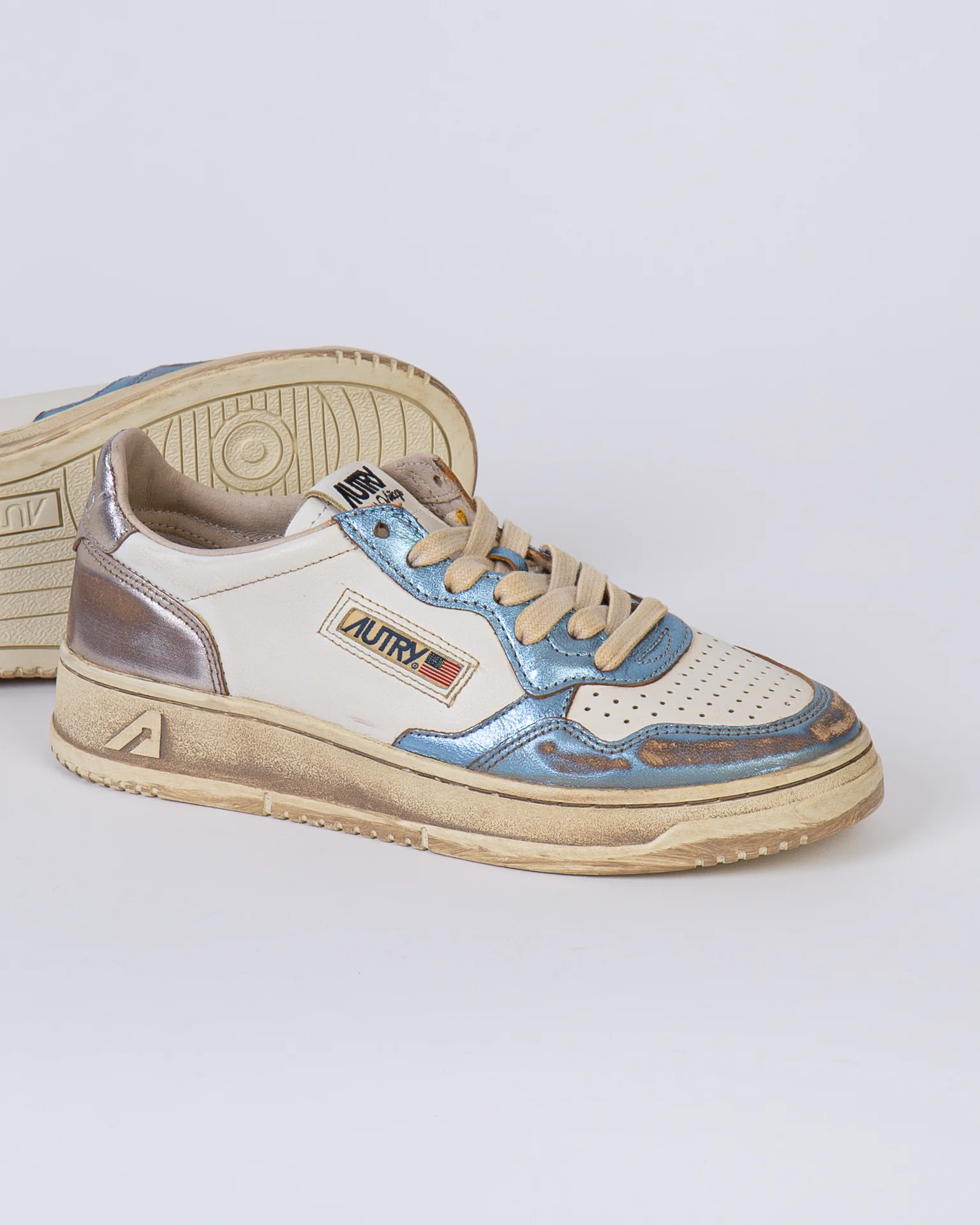 Autry, sneakers donna AVLW-MT 12 argento, medalist super vintage, con rifiniture effetto metallico bicolor. La scarpa scattata รจ una taglia 39