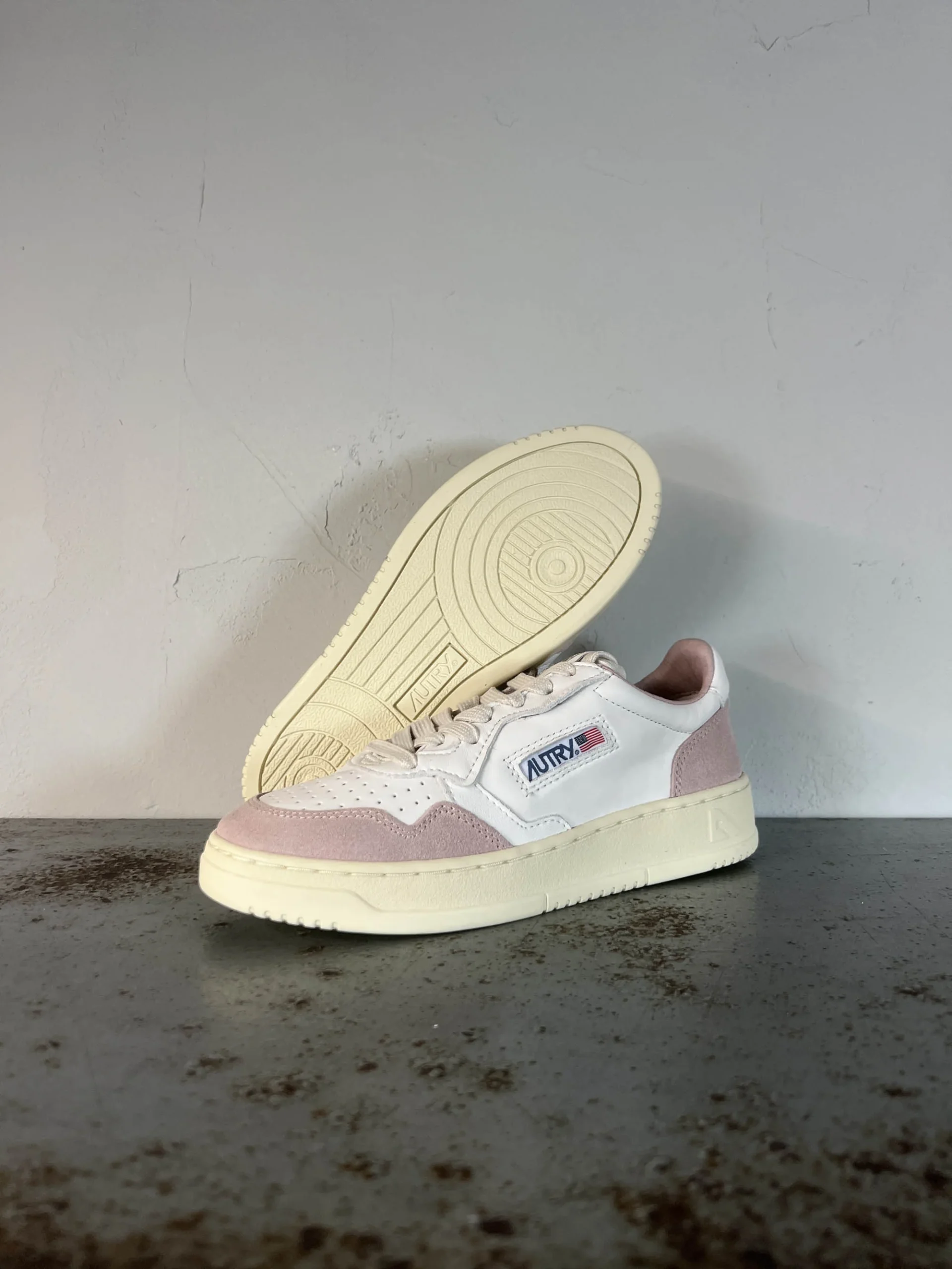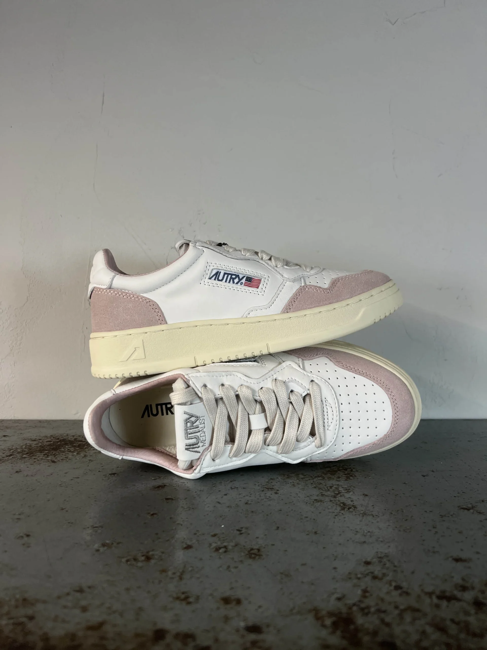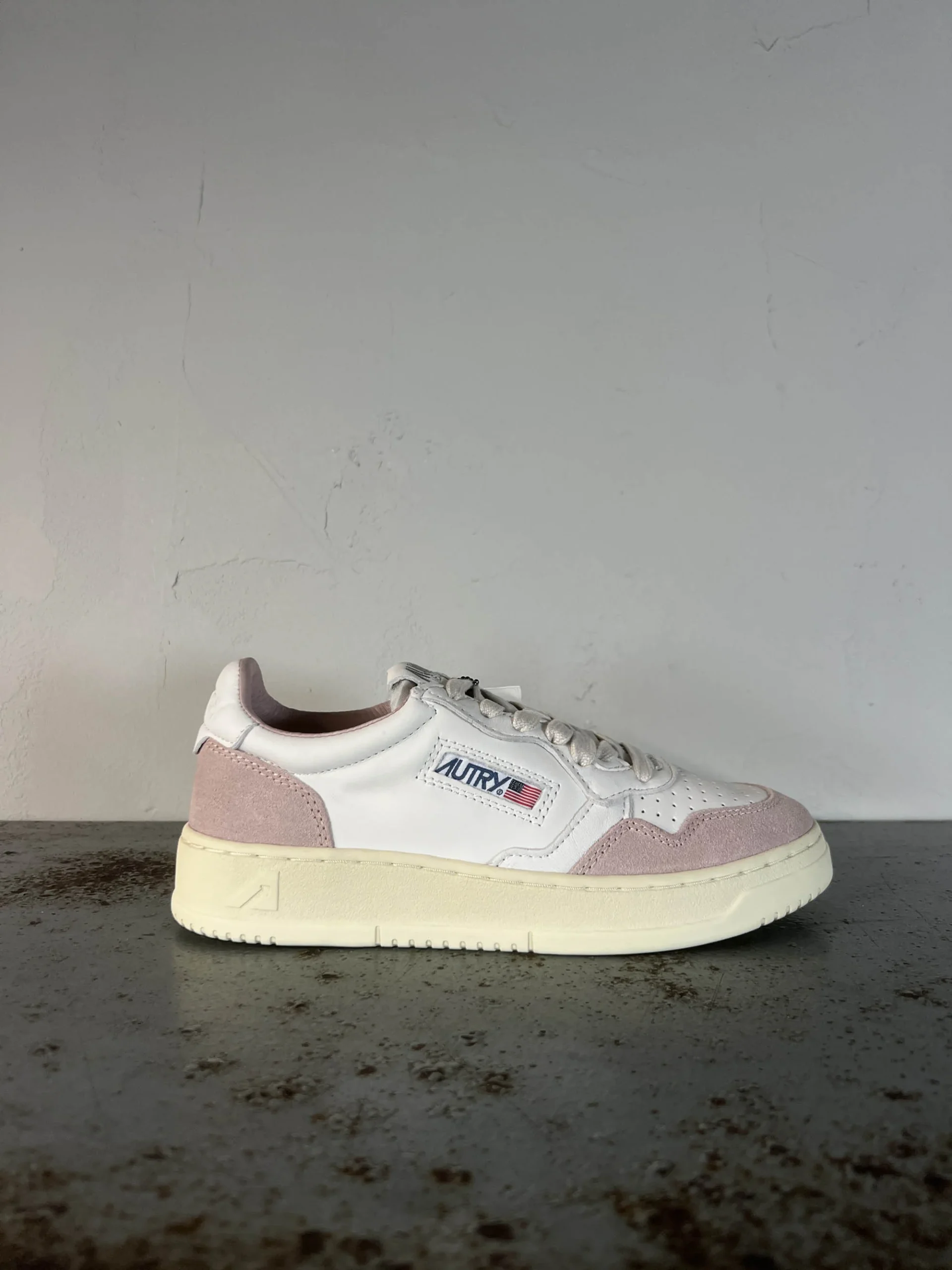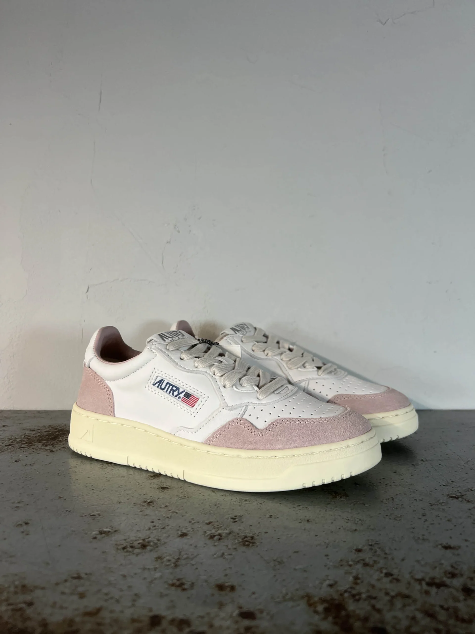 Codice Articolo: AULW GS36 Modello Medalist Colore white powder Tomaia in pelle e suede bicolor Talloncino in pelle bianco con lettering in basso rilievo Punta traforata Calzata regolare