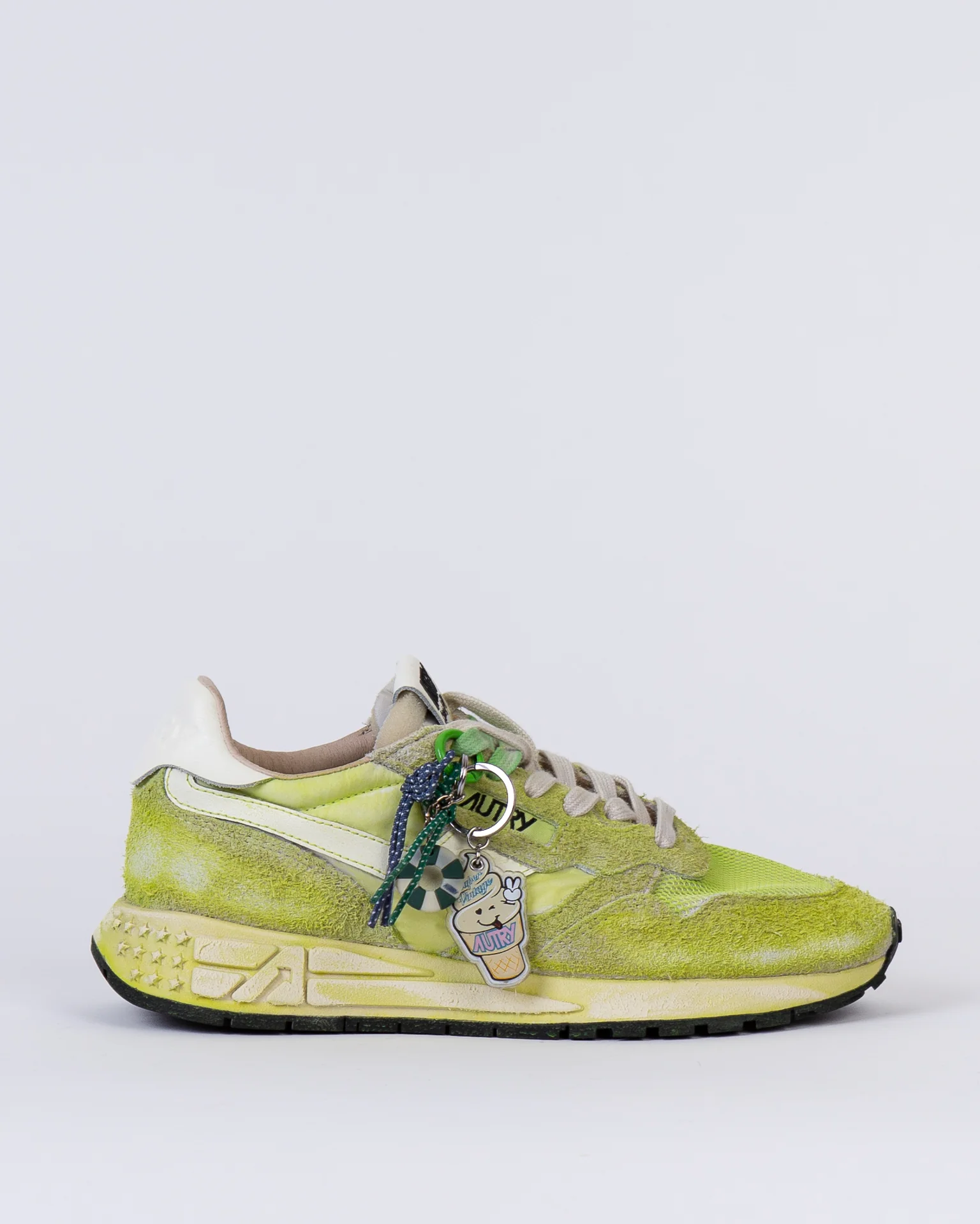 Autry, sneakers donna WVLW-YS 05 giallo, effetto spry, reelwind con dettagli in naylon e accessorio super vintage agganciato ai lacci. La scarpa scattata รจ una taglia 39