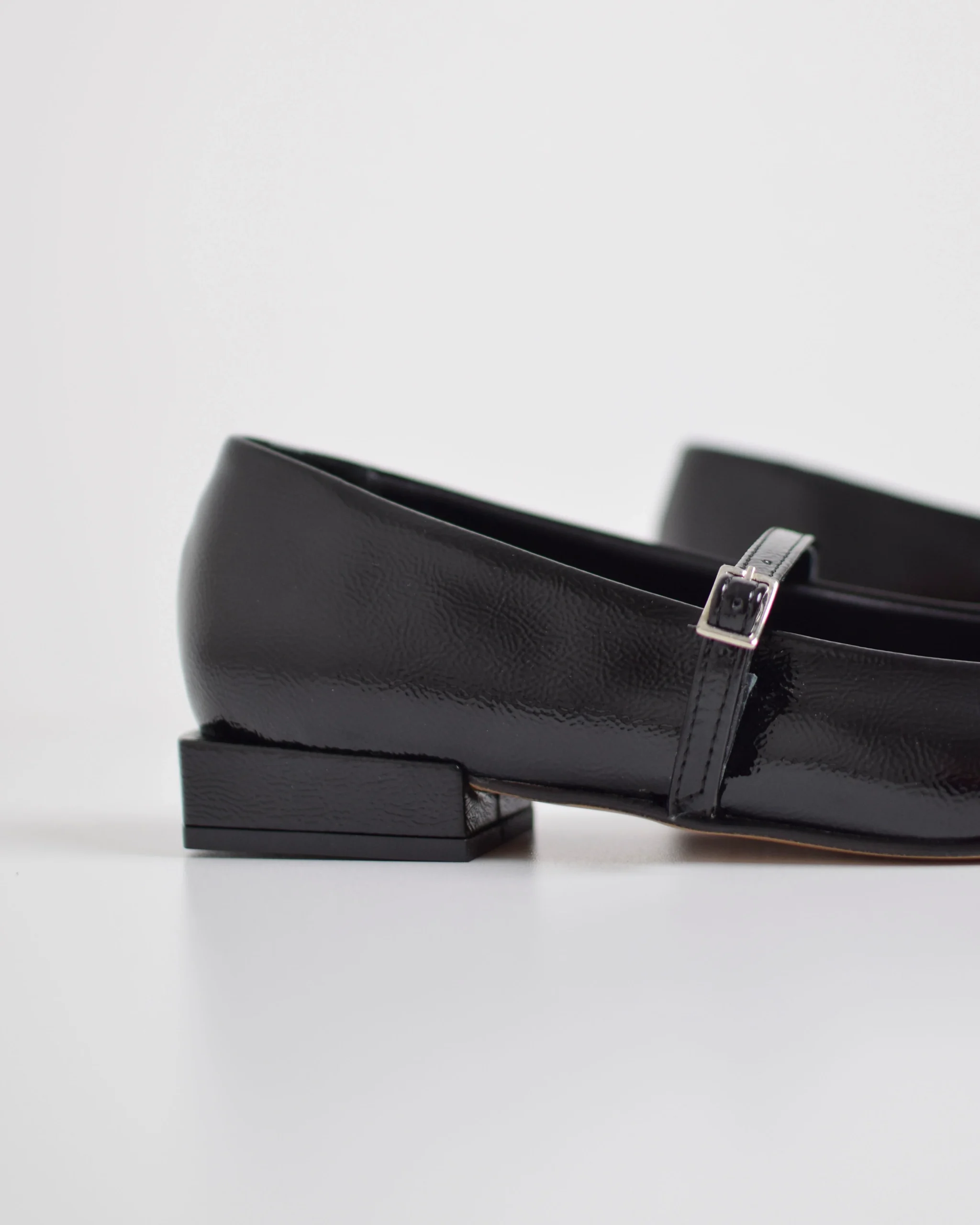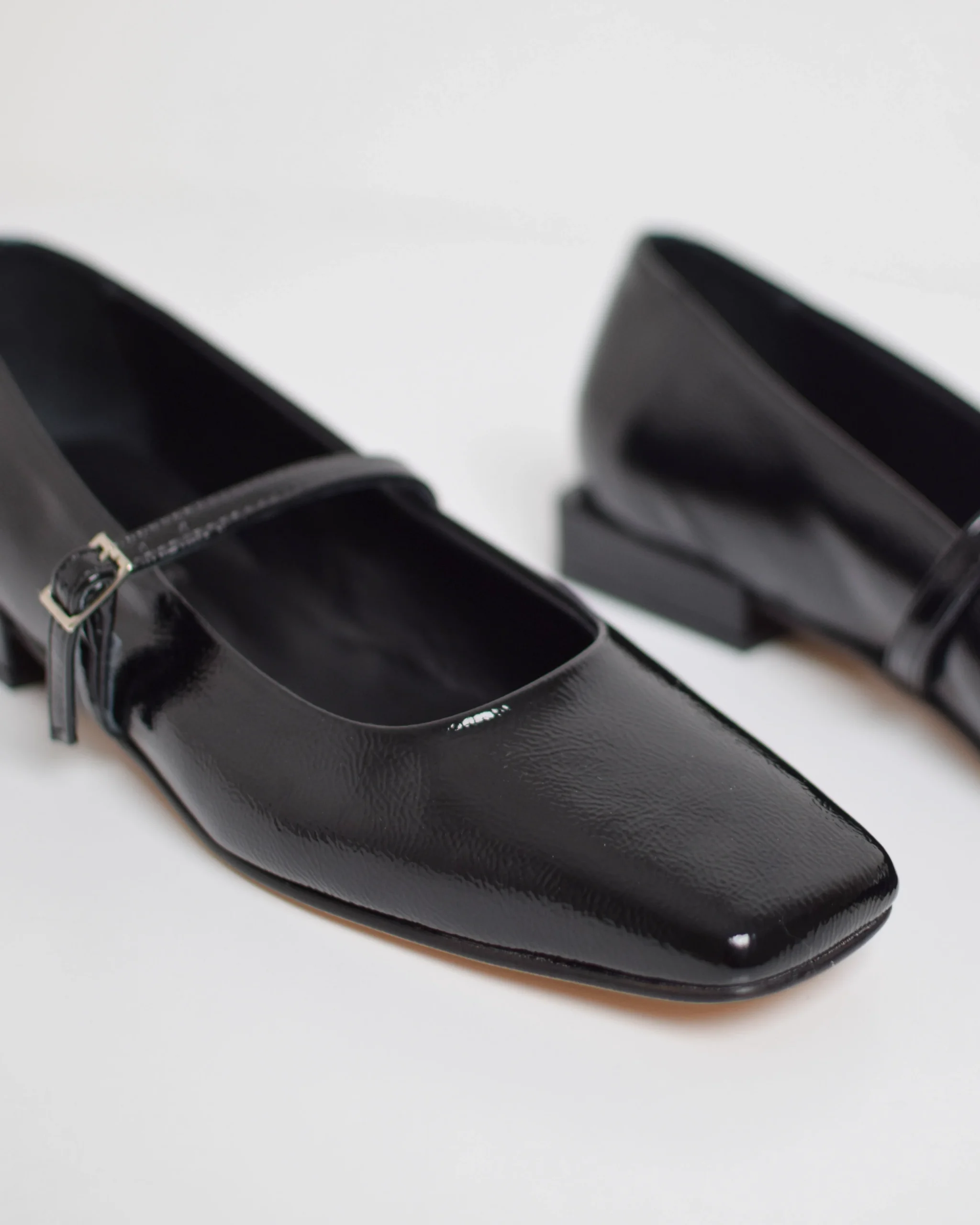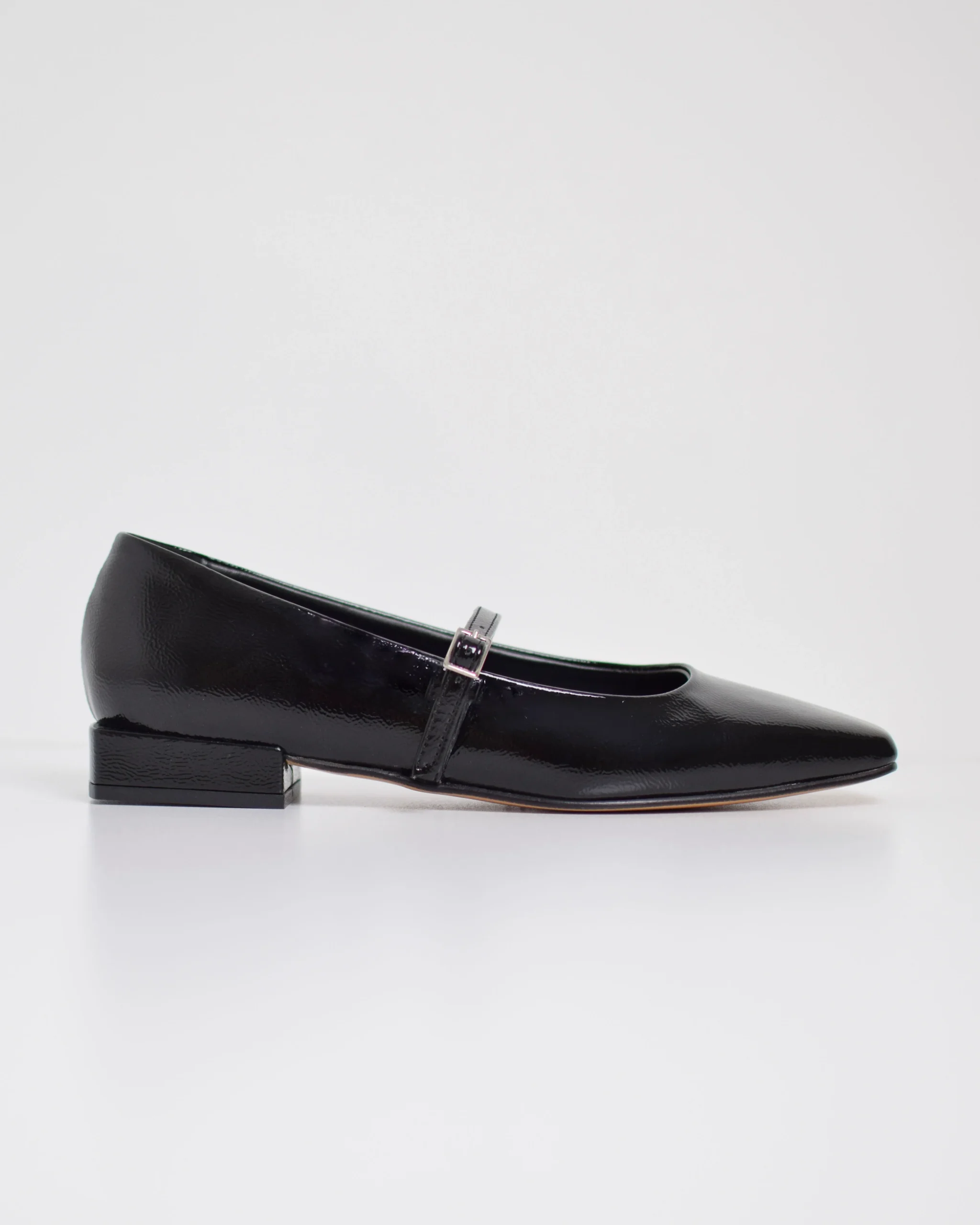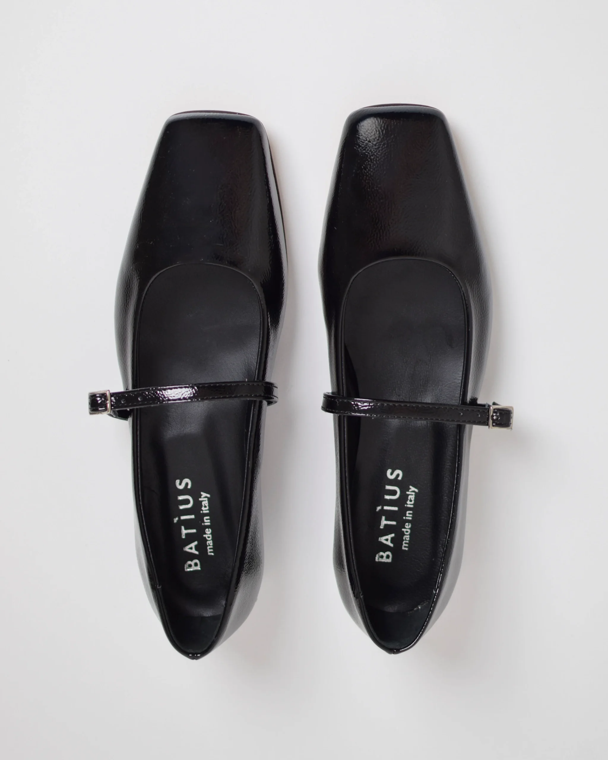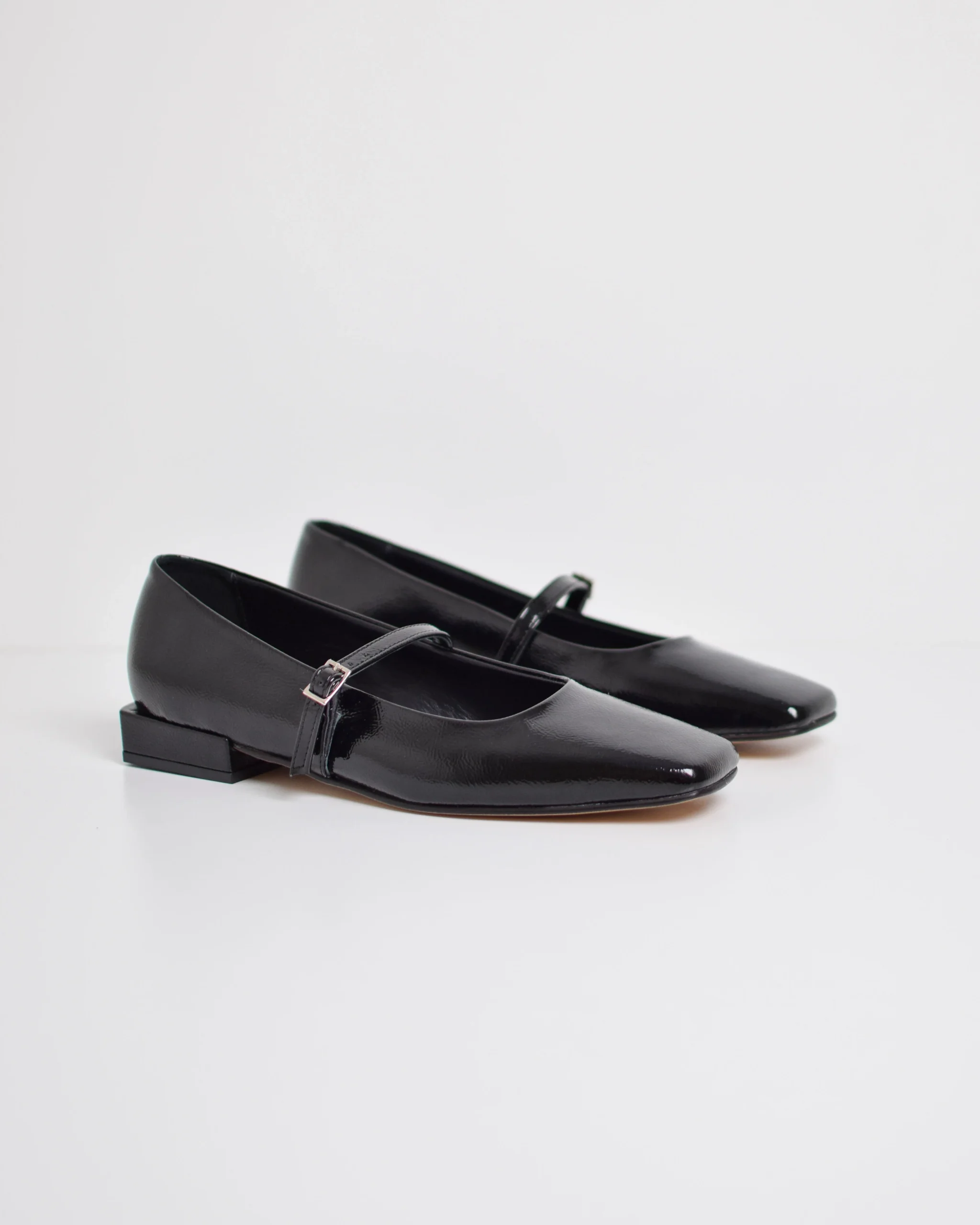 Ballerine in pelle verniciata Nero Punta quadrata Vera pelle Suola in cuoio Produzione Italiana