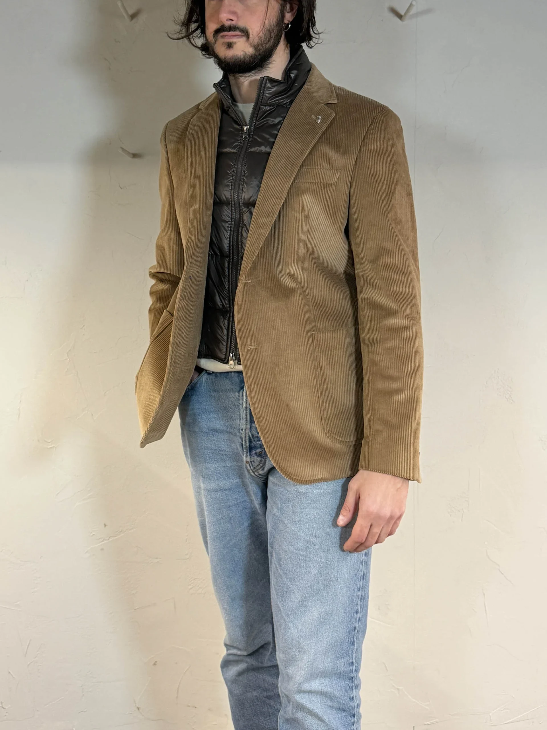 Codice Articolo: 35BB2038 Colore: beige camel Giacca monopetto in velluto di cotone Protezione imbottita sul petto con zip rimovibile Tasche sul fondo Vestibilitร regular Composizione: 98% Cotone 2% Elastane