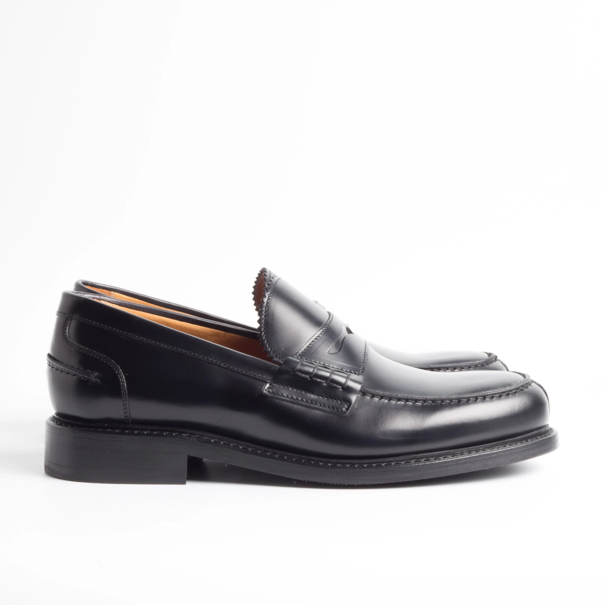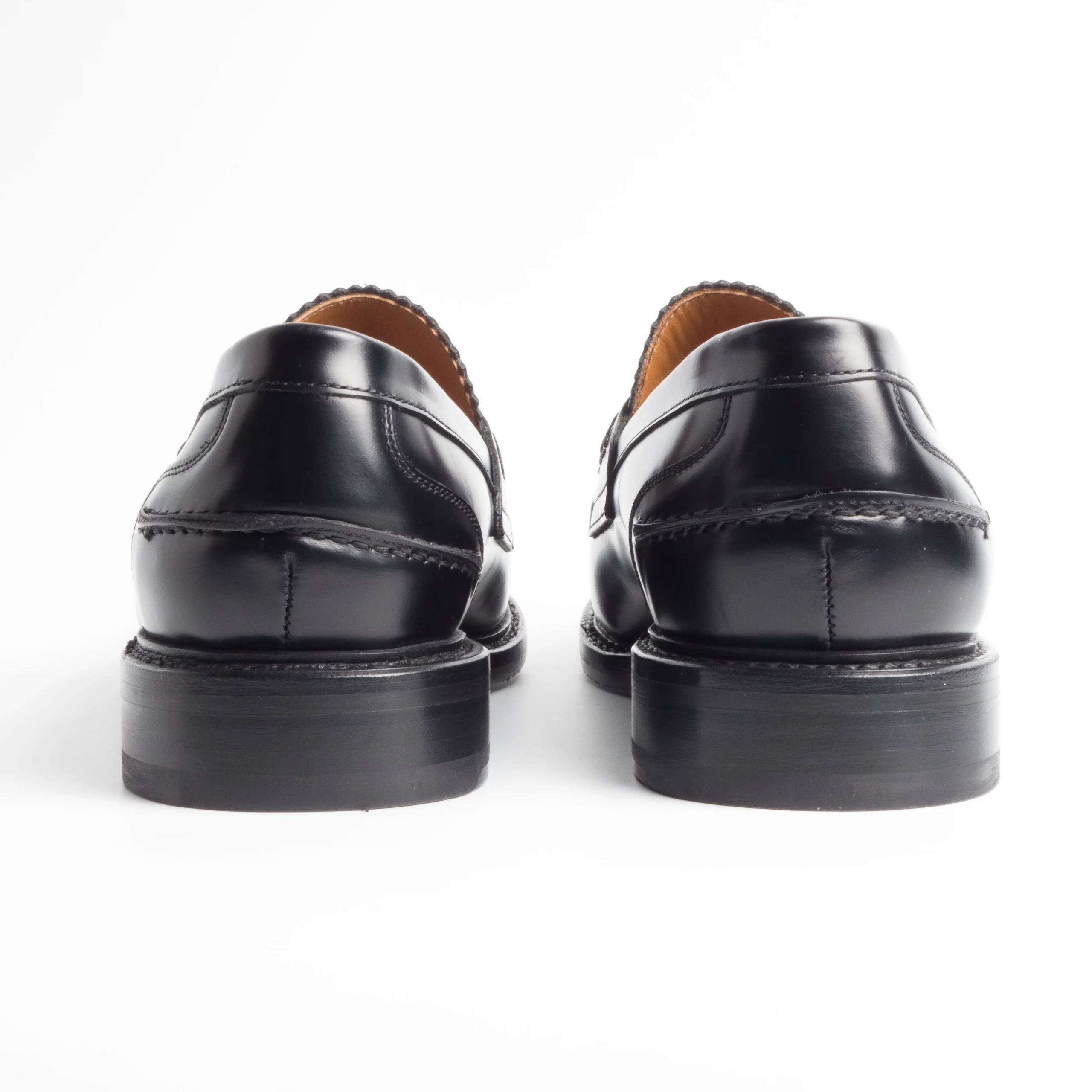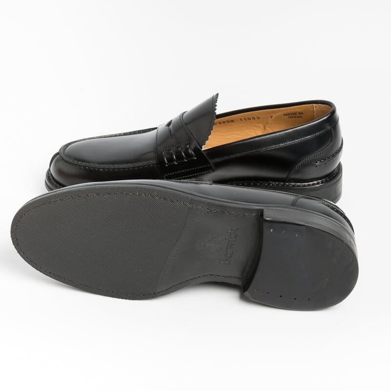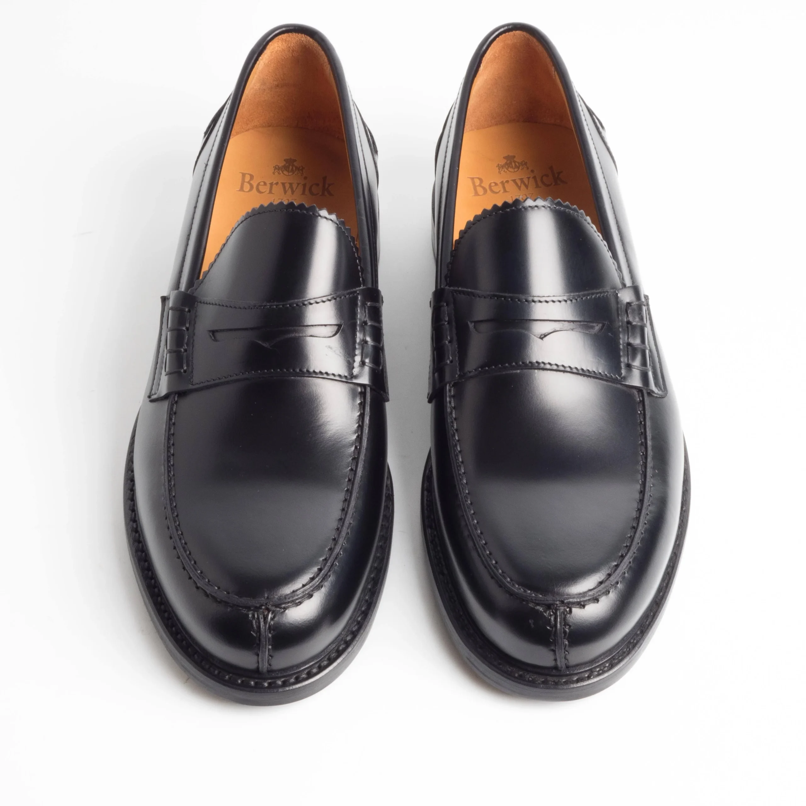 Mocassino di Berwick 1707 realizzato in pelle di vitello di colore nero, doppio fondo in cuoio, costruzione Goodyear, interno e sottopiede foderato in pelle, suola in gomma. Tacco 3 cm.