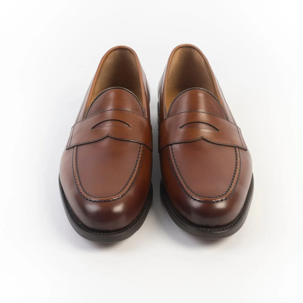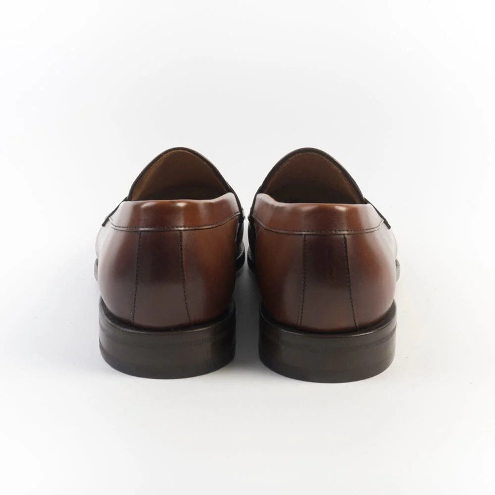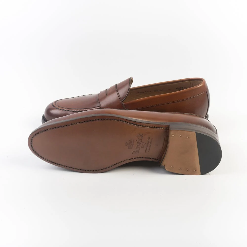 Mocassino Berwick 1707 con mascherina e punta sfilata in pelle di vitello di colore marrone, interno sfoderato e sottopiede in pelle. Costruzione Goodyear, suola in cuoio.