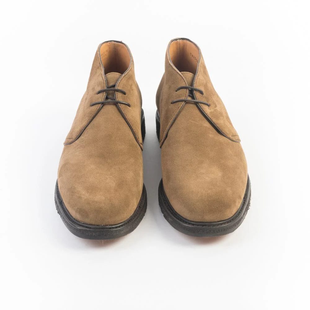 Polacco di Berwick 1707 realizzato in camoscio di colore noce. Allacciatura due fori, lacci in cotone cerato di colore marrone. Lavorazione Goodyear, interno foderato, sottopiede in pelle. Suola in gomma naturale. Tacco 3 cm.