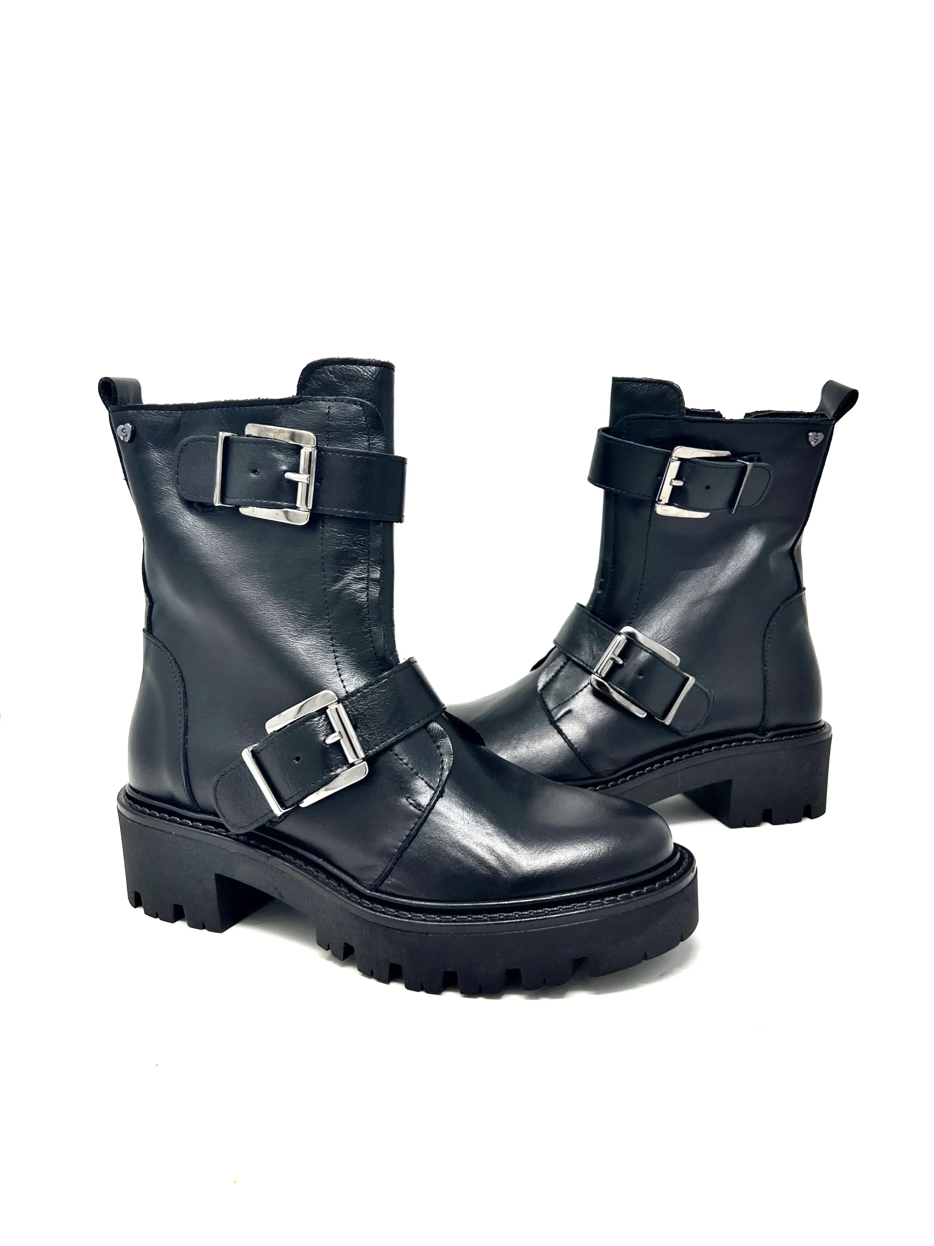 Bikers con fibbie fondo chunky neri -GIUL2N