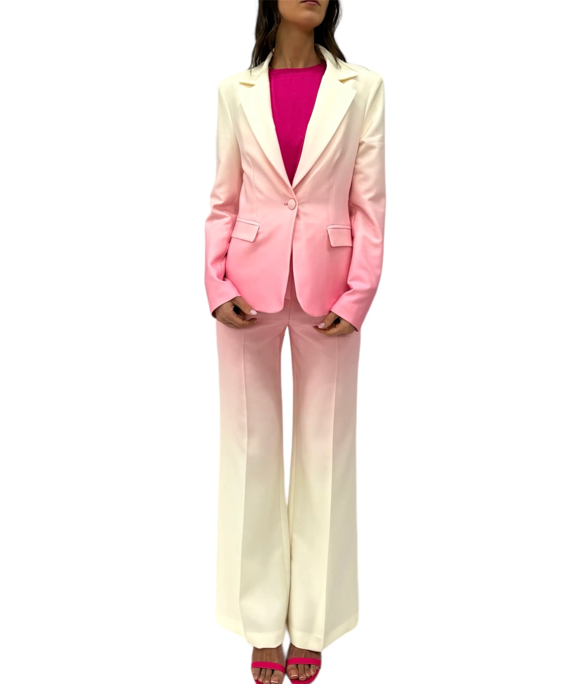 Questo blazer doppiopetto presenta una particolare fantasia degradè e una spallina rinforzata, per una vestibilità più strutturata e professionale. Il mono bottone aggiunge un tocco di eleganza.