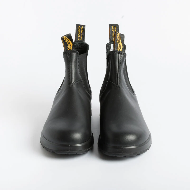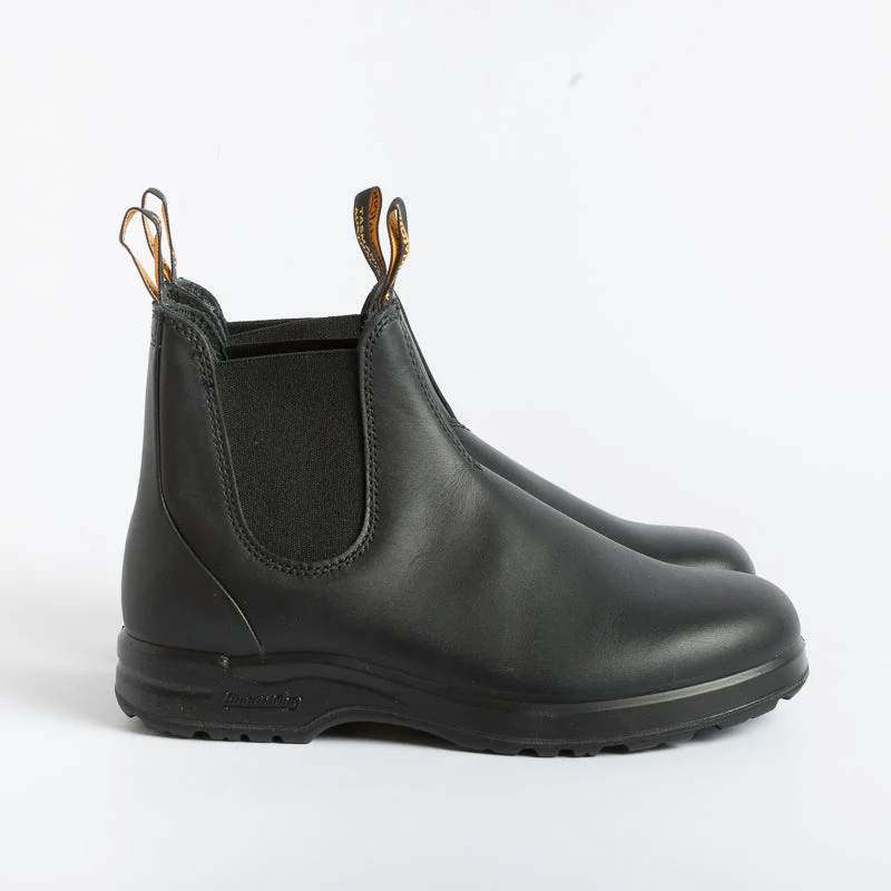 Beatles da donna Blundstone dal gusto country fashion, particolarmente adatto in caso di pioggia, in pelle nera liscia, elastico in nuance, suola Vibram per una maggiore stabilitร .