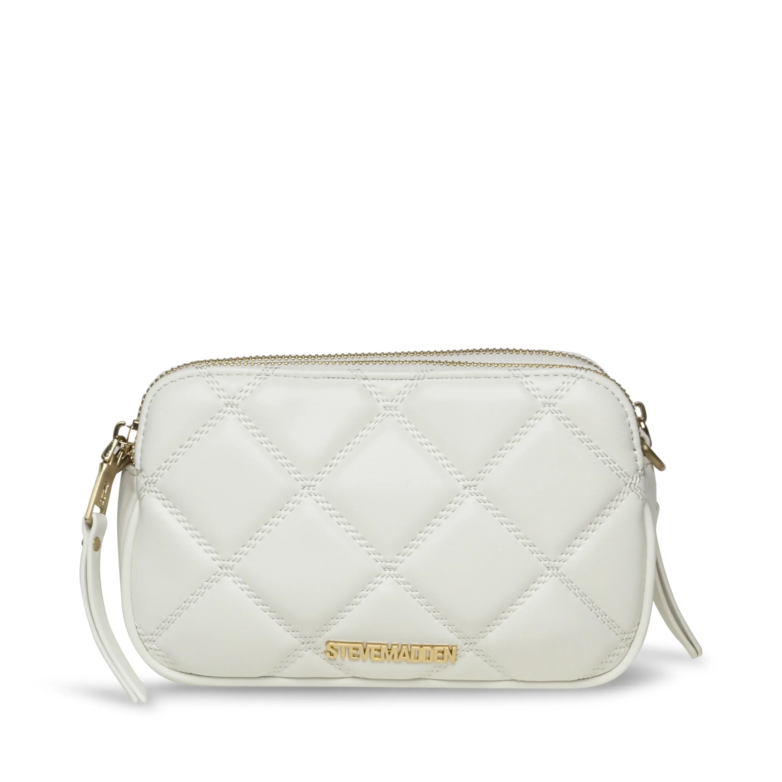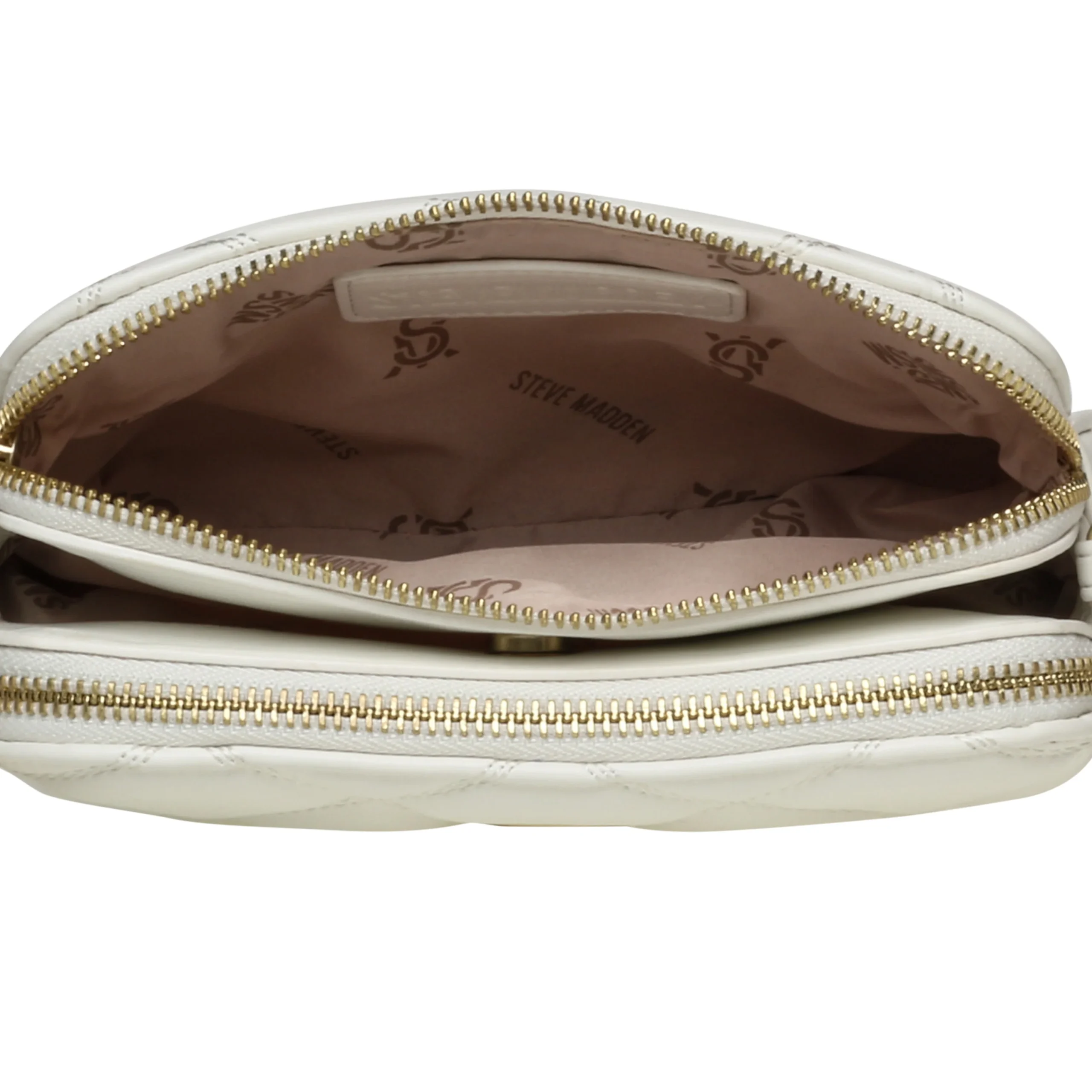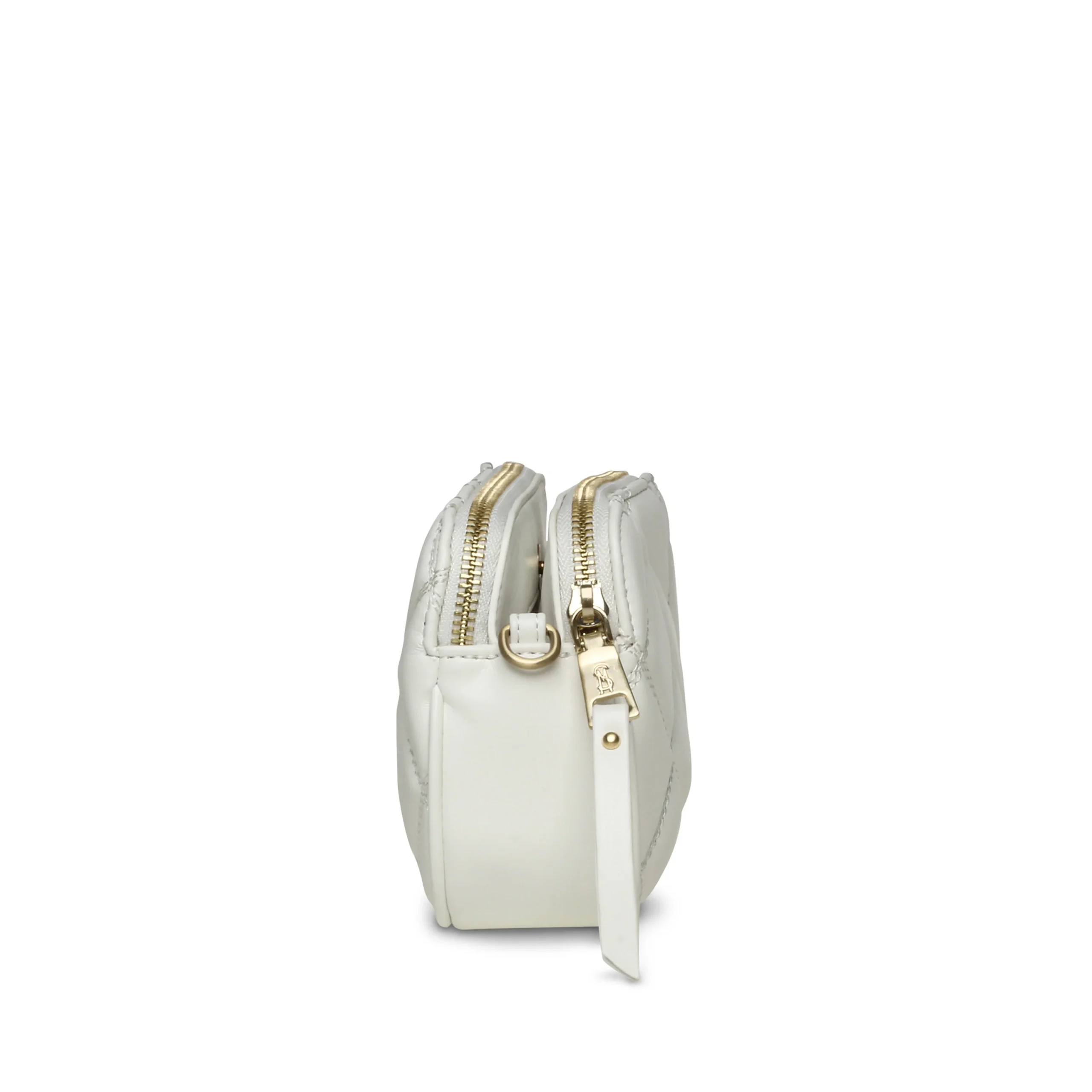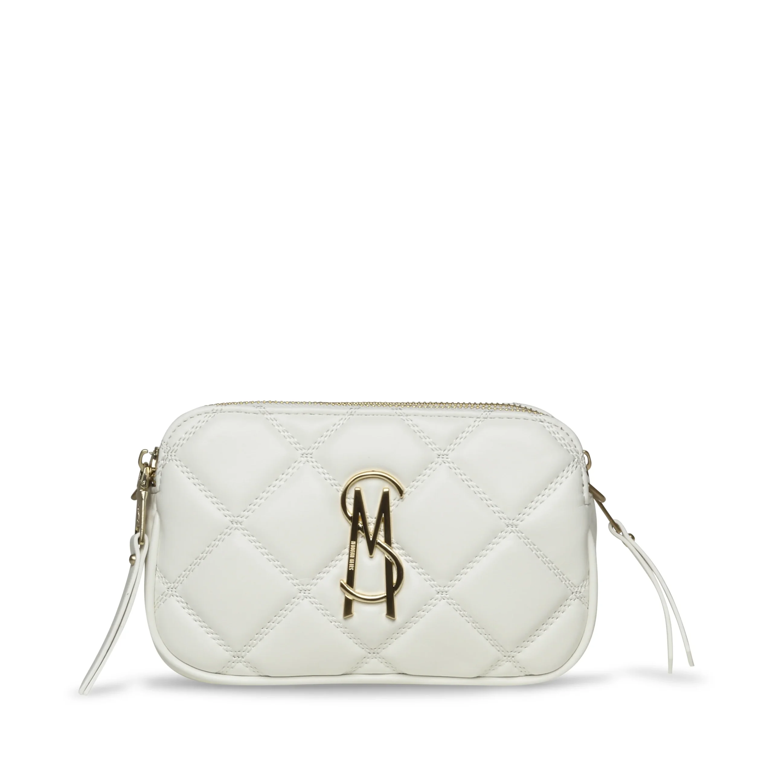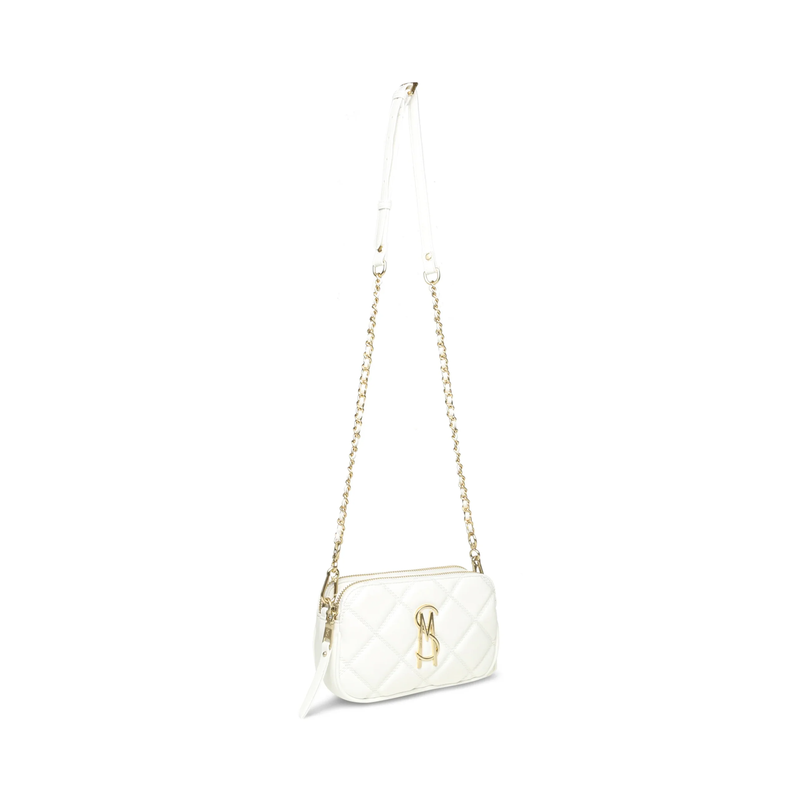 Materiale esterno in similpelle Motivo trapuntato a rombi Hardware con logo SM sulla parte anteriore esterna Tracolla a catena regolabile Borsa a doppia tasca con chiusure a zip Dimensioni: 19 Cm x 12 Cm Tracolla: 61 cm