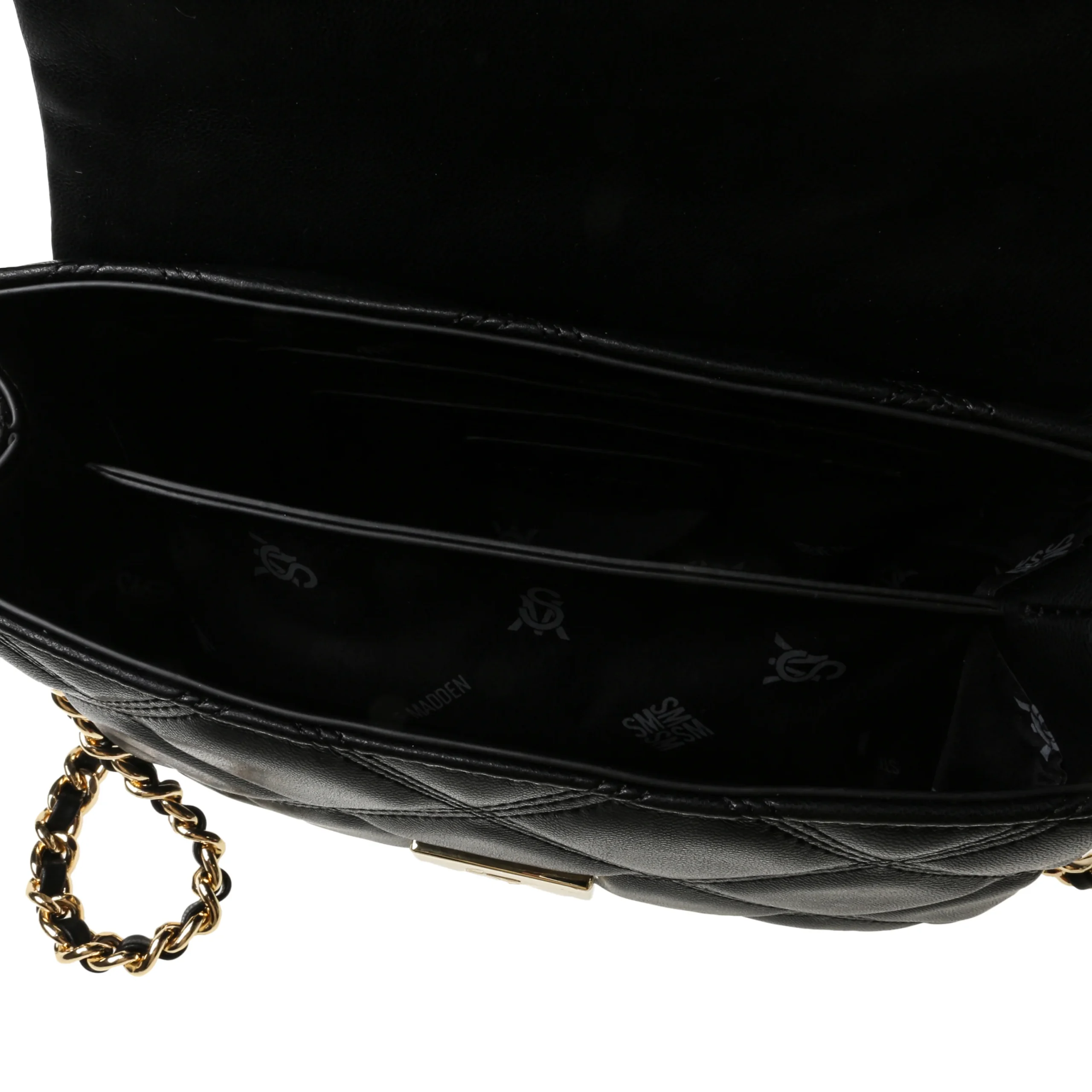 Materiale esterno in similpelle Tracolla a catena scorrevole e regolabile Dimensioni: 16 cm x 23 cm x 9,5 cm Lunghezza tracolla: 61 cm