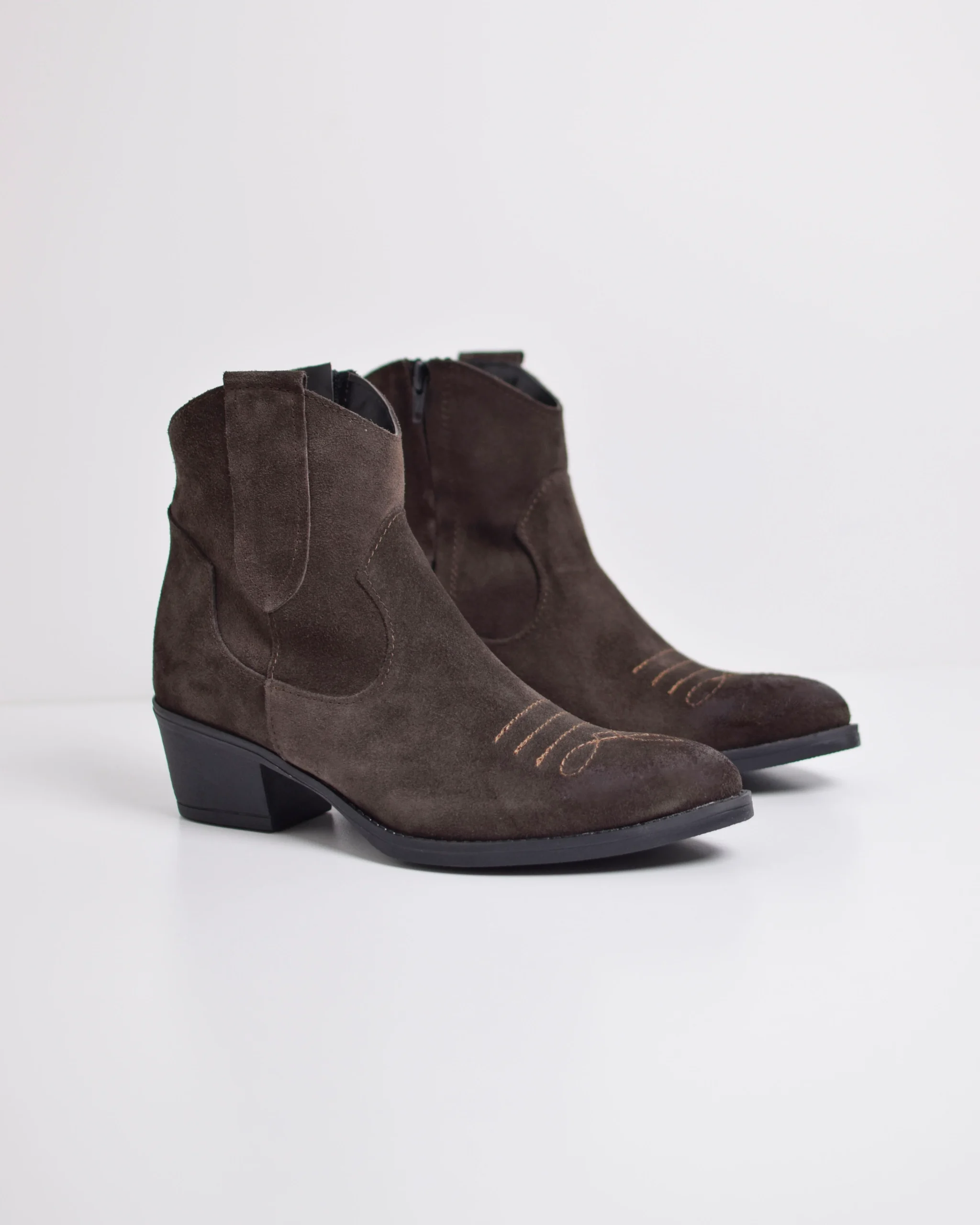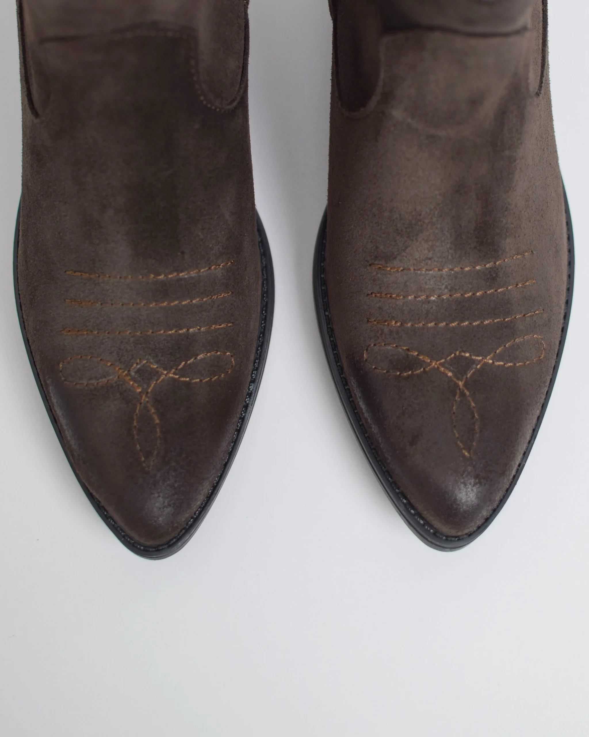 Camperos Bassi Altezza Tacco 5,5 cm Altezza Gambale 14 cm Pelle Scamosciata Marrone Produzione italiana