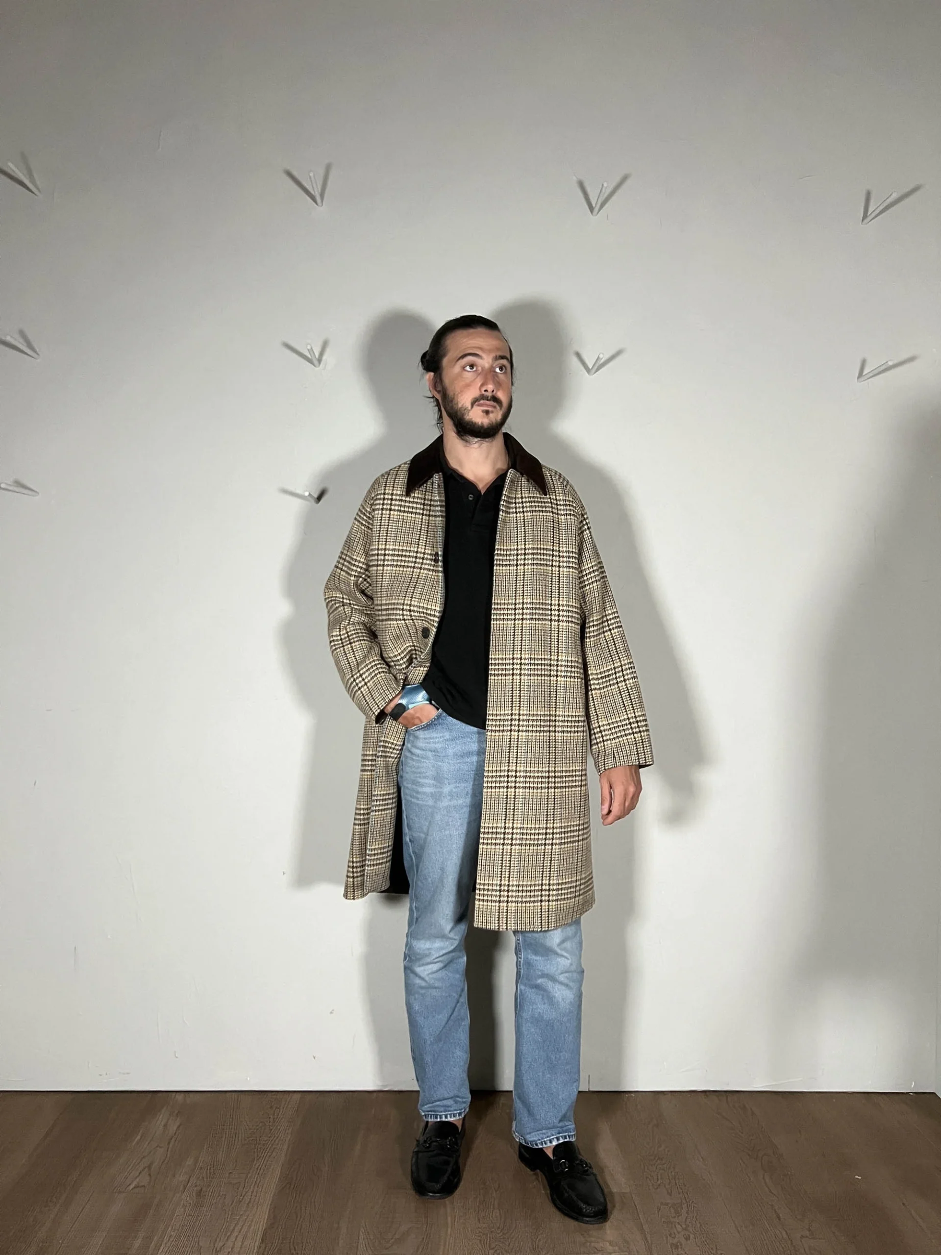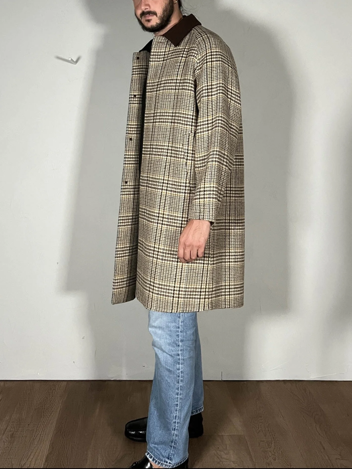 Codice Articolo: B6F0025 Vestibilitร ampia Chiusura centrale con patta e bottoni Colletto in velluto Interno foderato Handmade in Italia Taglia indossata 48 (Modello: altezza 188cm)