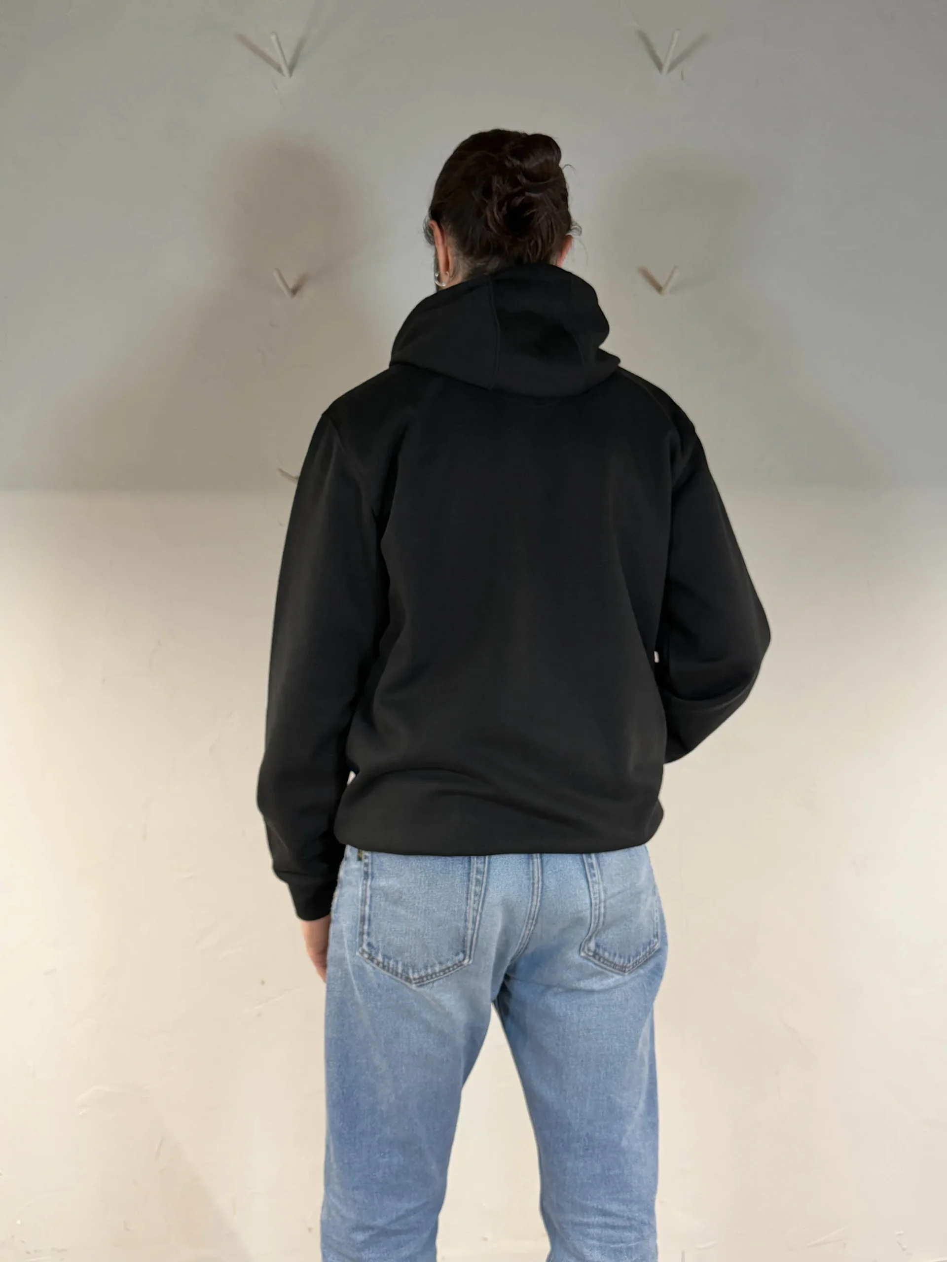 Codice Articolo: TS0121 Colore: Black Felpa con cappuccio regolabile con laccio Tasca frontale con etichetta carhartt cucita Interno felpato Polsi e fondo elasticizzati Vestibilitร over (acquista una taglia in meno) Composizione: 59% Cotone 41% Poliestere Made in Mexico Taglia indossata M (Modello: Altezza 188cm) Made in Mexico