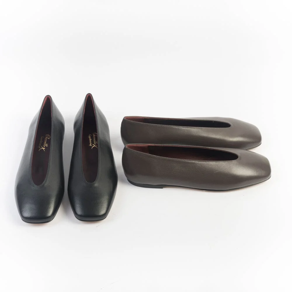 Ballerina di Cheville realizzata per Cappellettoshop in pelle di colore moka con punta squadrata e tomaia accollata stile retrรฒ. Sottopiede in pelle. Suola in cuoio. Disponibile anche nella variante di colore nero. Realizzato In Italia. Calzata Regolare. Guida Taglie> Per maggiori informazioni sulla calzata contattaci >