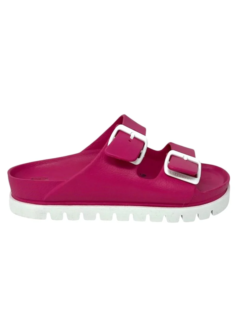 La ciabatta con doppio cinturino ti offre un comfort ottimale e uno stile unico. Il colore fuxia del cinturino si abbina perfettamente al fondo bianco, conferendo un tocco di eleganza al tuo look. Un’ottima scelta per camminare con sicurezza e stile.