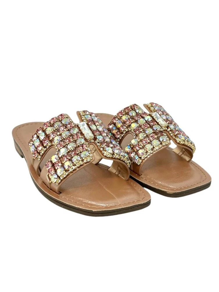 L’eleganza e il comfort si uniscono in queste ciabatte flat ad H con strass. Realizzate con materiali di alta qualitร , queste ciabatte sono perfette per un look sofisticato e comodo allo stesso tempo. La tomaia in strass aggiunge un tocco di luce, mentre la suola ad H garantisce un sostegno stabile. Indossale per un look elegante e raffinato.