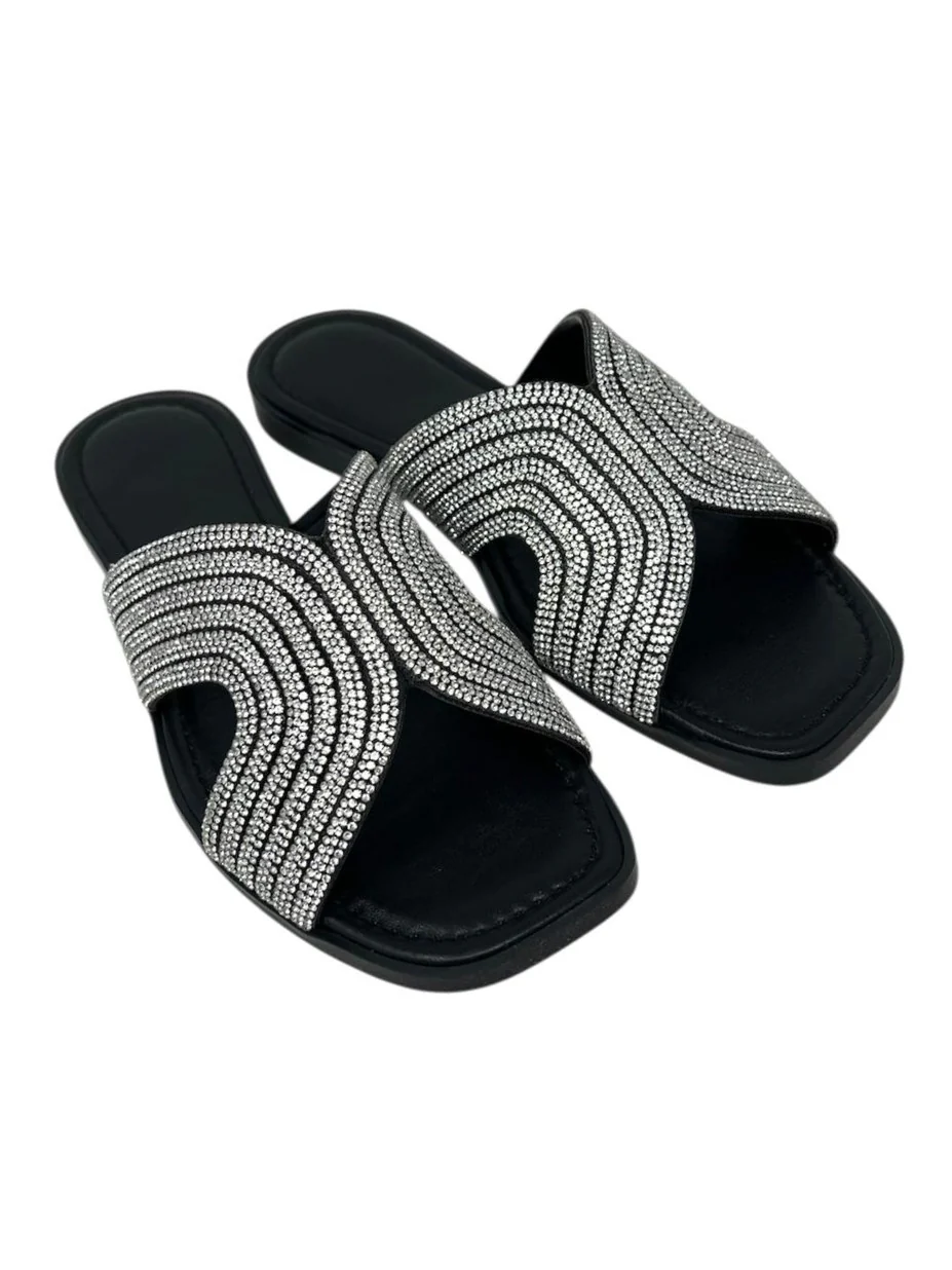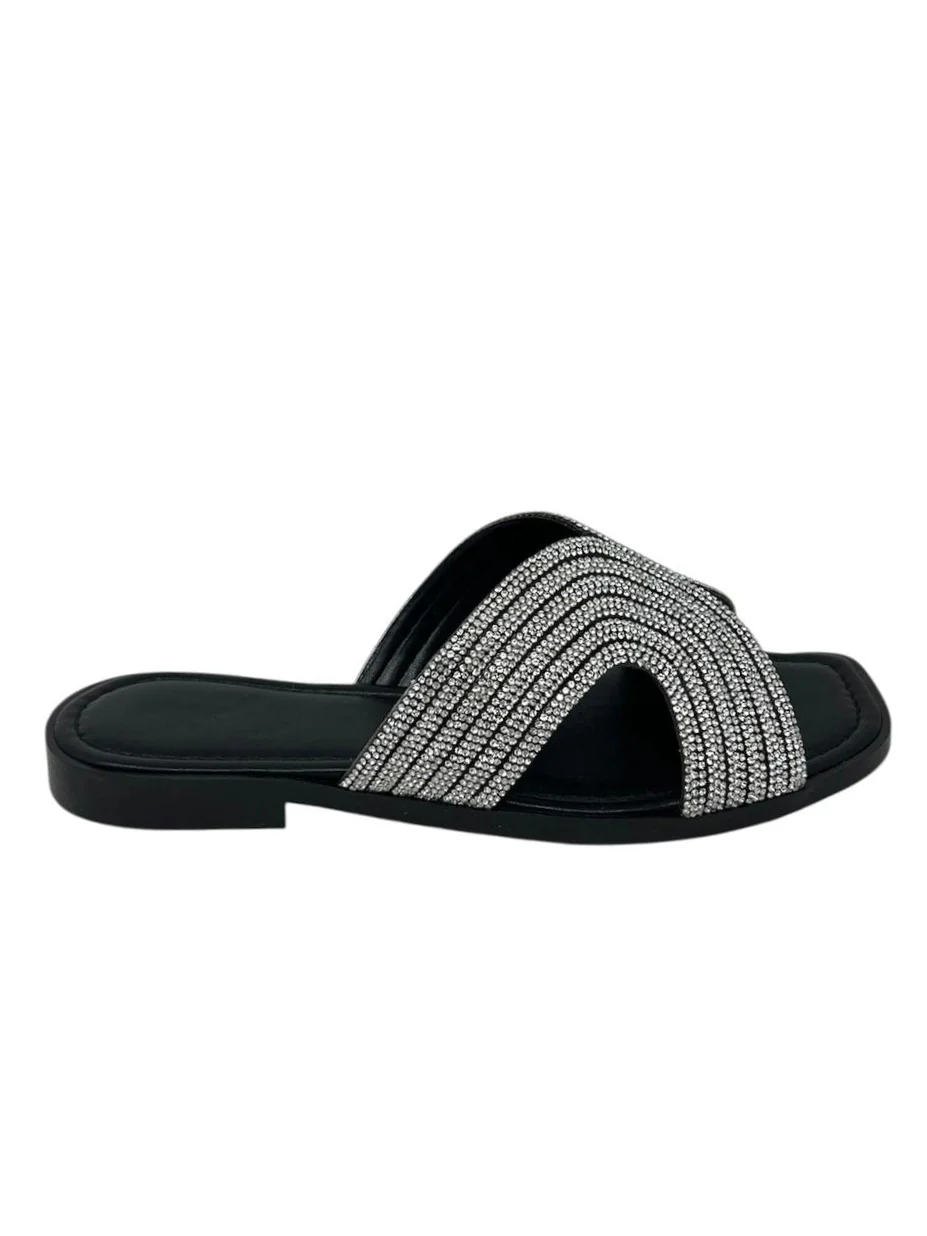 Ciabatta flat ad H nera con strass – 655NE