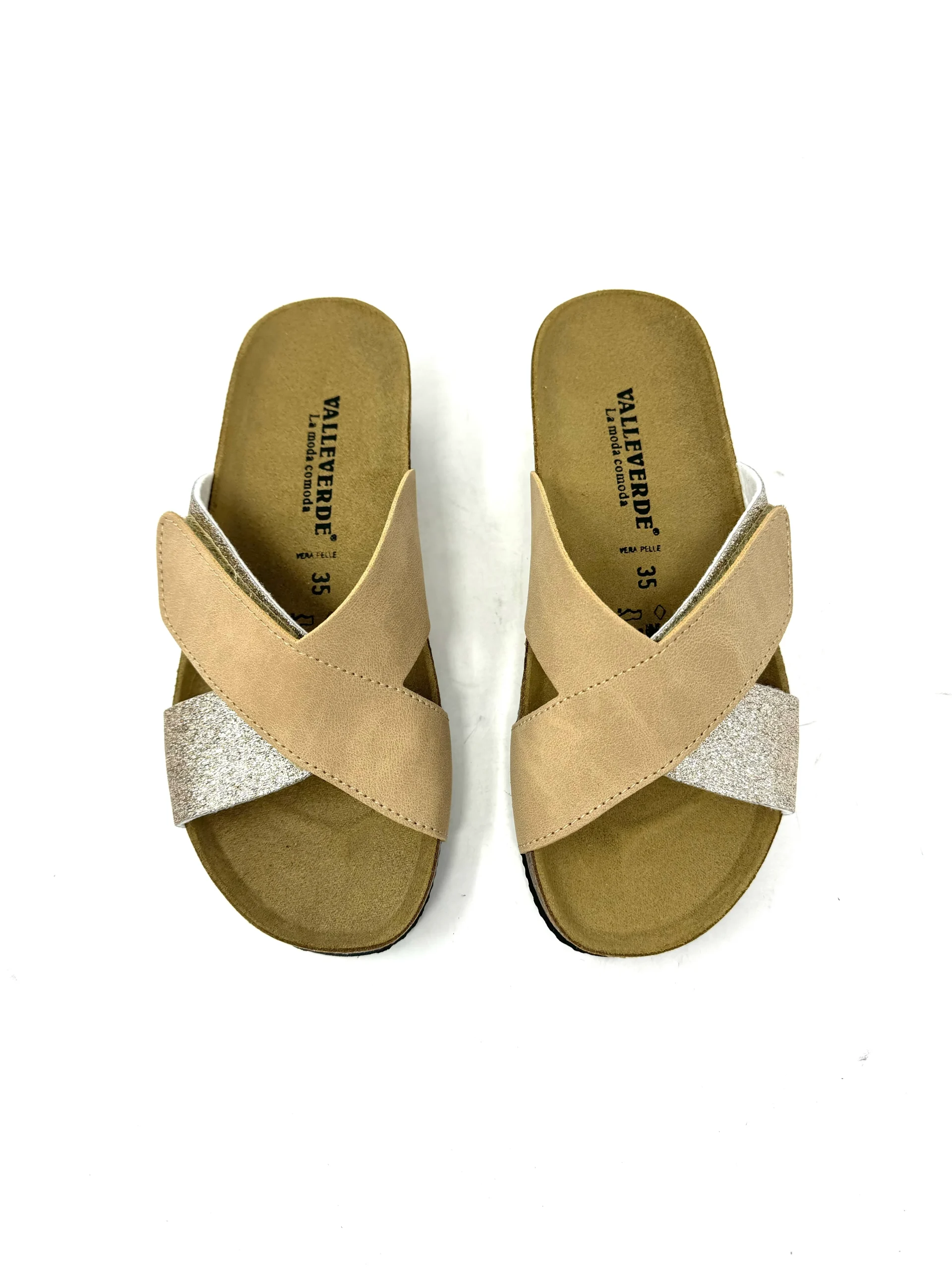 Ciabatta fondo sughero incrociato glitter -VG1299S