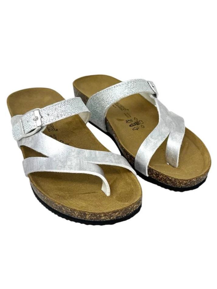 Rifinite il vostro stile estivo con le nostre eleganti ciabatte zeppa infradito argento. Realizzate con materiali di alta qualitร , offrono comfort e supporto per tutto il giorno. Ideali per passeggiate in cittร o serate in spiaggia. Aggiungete un tocco di classe al vostro look con le nostre zeppa infradito argento.
