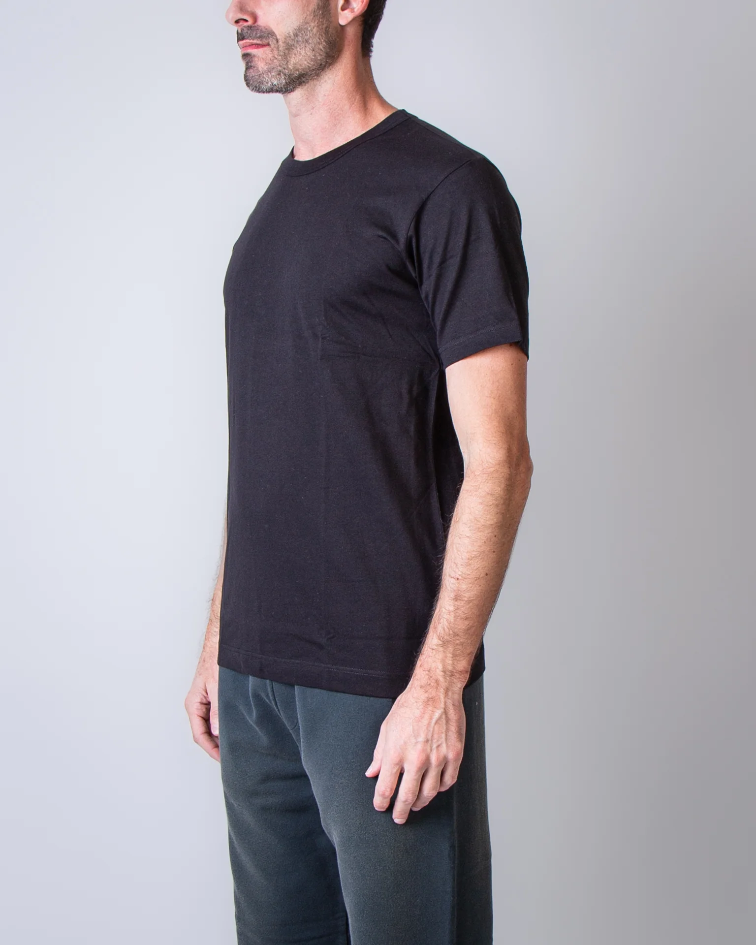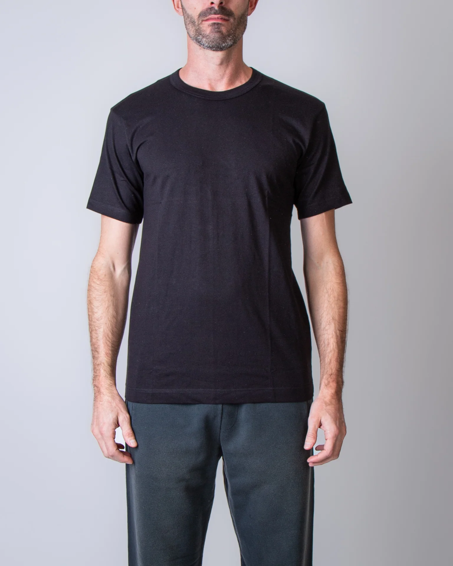Comme Des Garcons Shirt, t shirt uomo FZ-T002 BLACK nero, manica corta, girocollo, 100% cotone. Il modello รจ alto 186 cm e indossa la taglia L