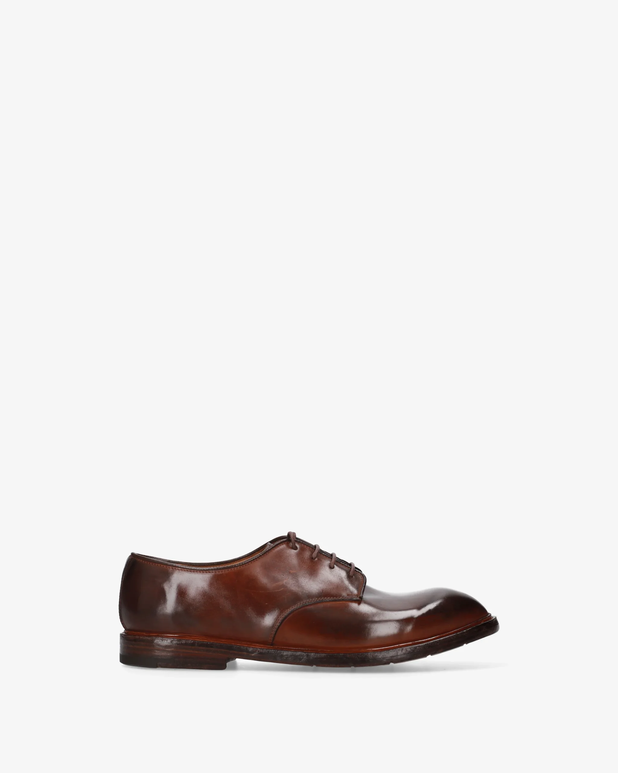 Classic Derby lace-up shoe, characterized by a vintage look and sturdy construction. The washed finish gives the leather a unique depth of color. Horse leather in Oak shade Washed treatment that gives the upper a worn and soft look 4-eyelet Derby with open lacing for a comfortable fit Goodyear welted with visible handcrafted welt