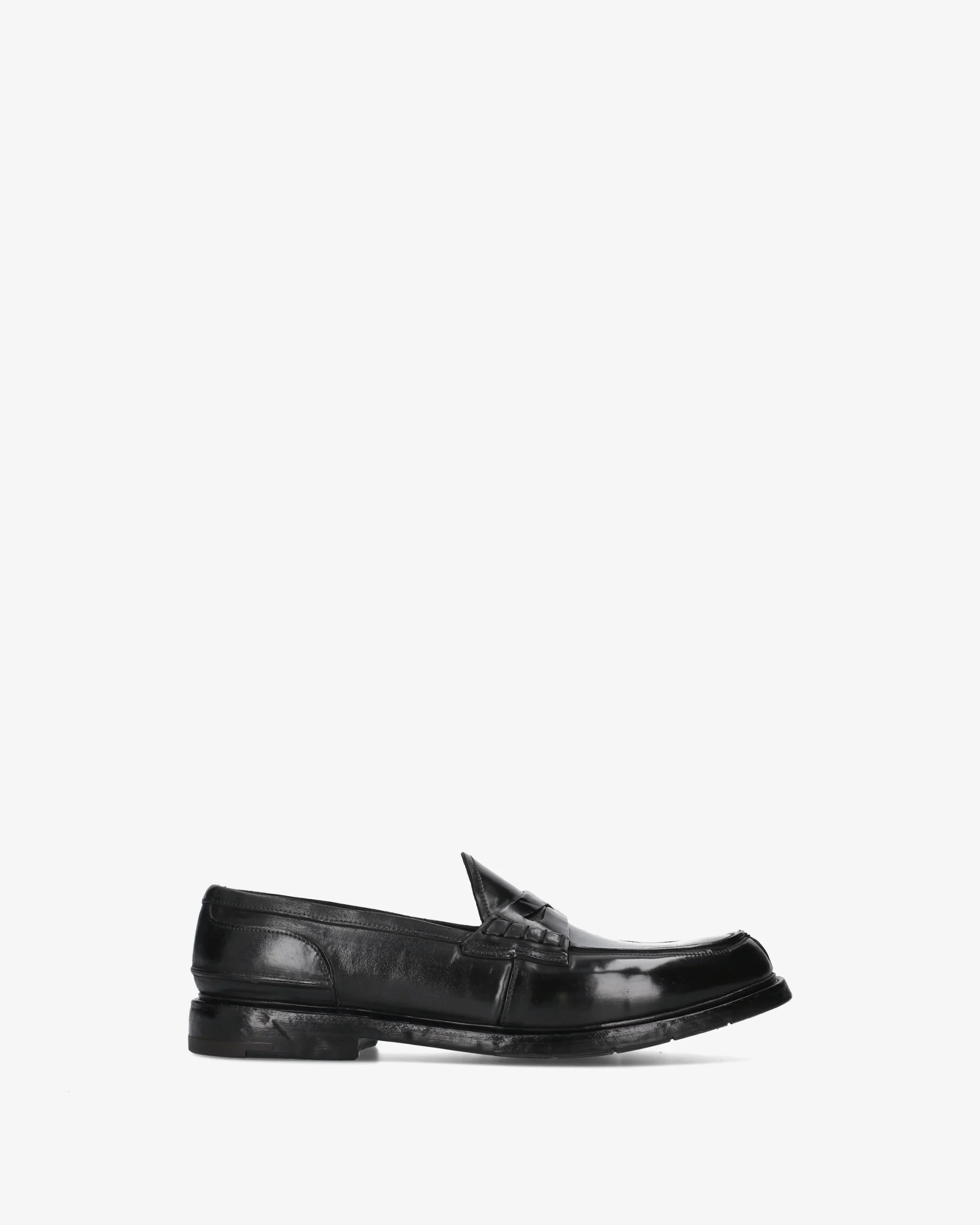 - Classic Penny Loafer with pronounced toe cap and handcrafted curling on the edges