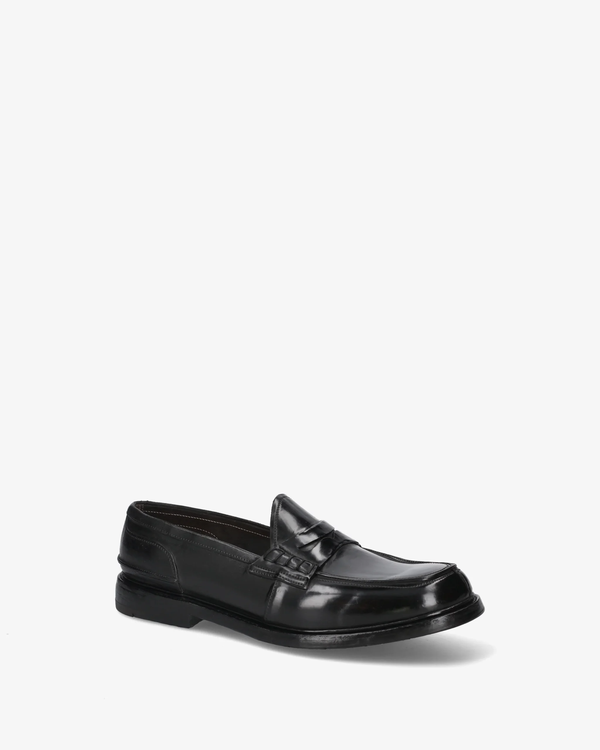 A Penny Loafer with a rigorous structure and bold aesthetic, expressing the highest quality in footwear through complex construction and premium materials. The glossy finish and artisanal details make it a distinctive piece in any formal wardrobe.