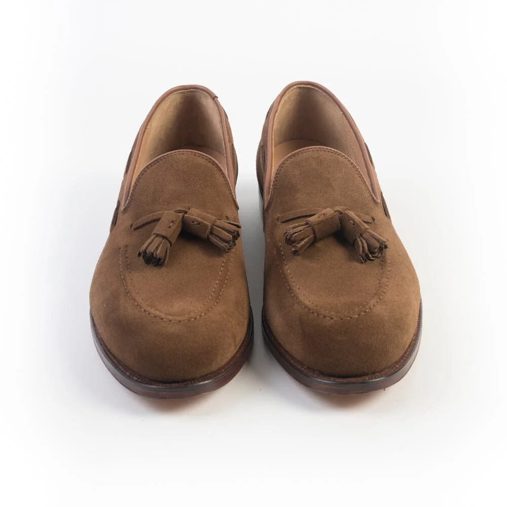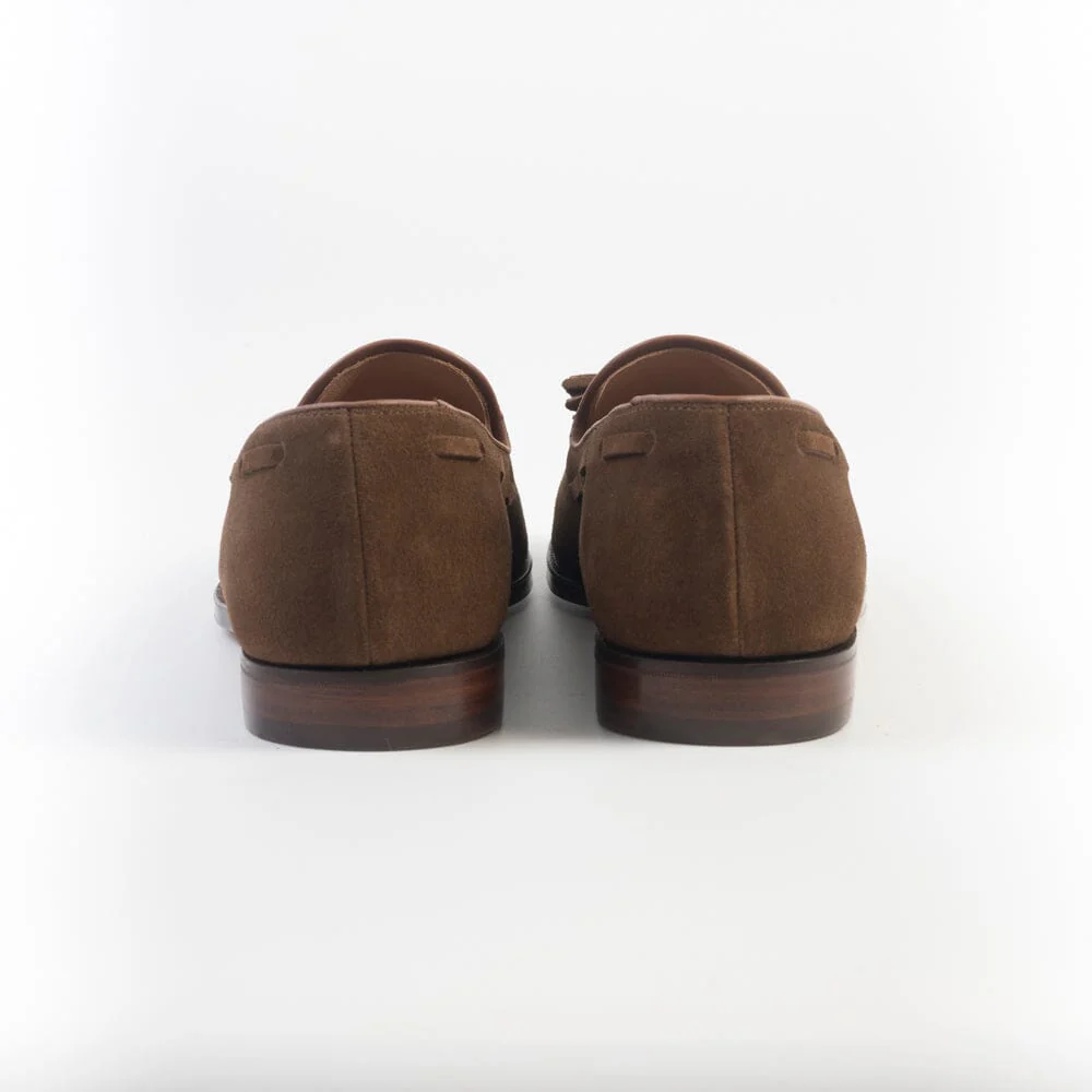 Mocassino con nappine di Crockett & Jones, realizzato in camoscio di colore snuff.