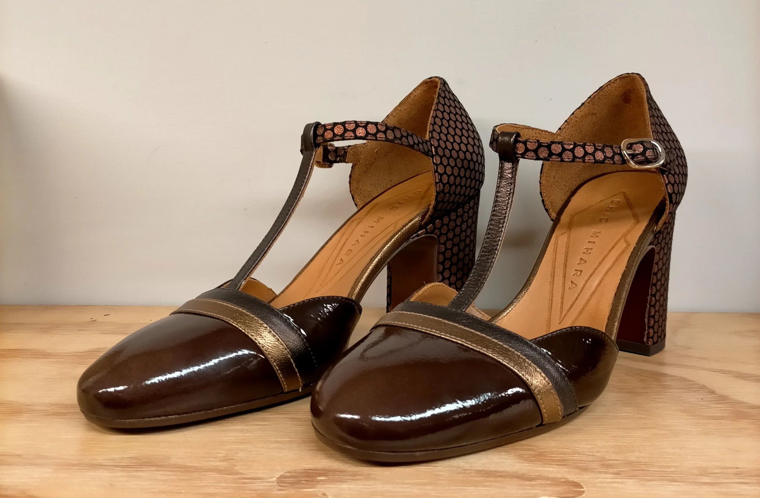 Dècolletè CHIE MIHARA MIVER in vernice bordeaux e oro, tallone pois rame