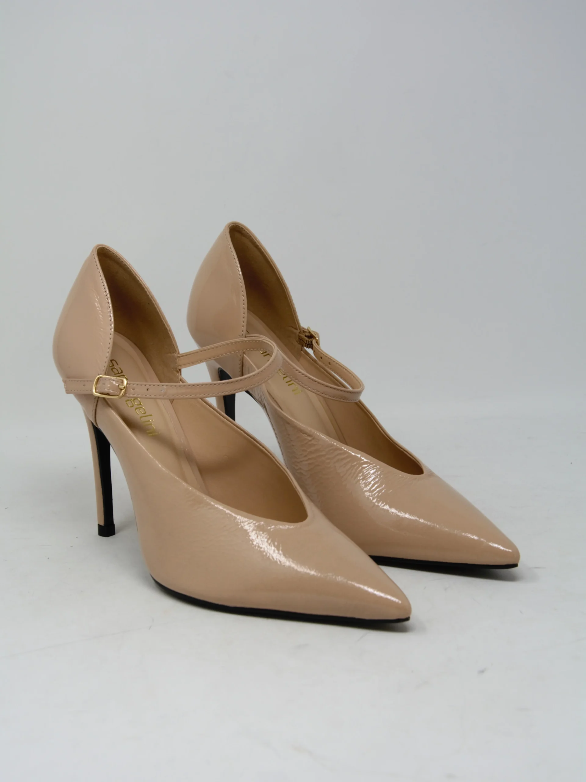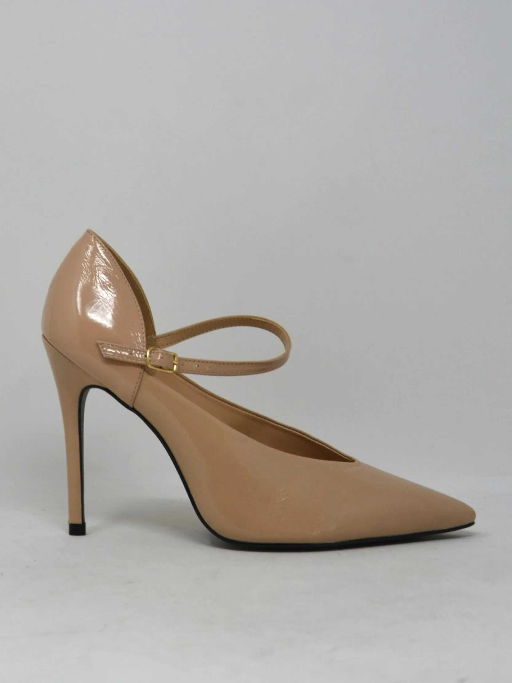 Questo decolleté color cipria, caratterizzato da un raffinato scollo a V e un cinturino sottile, unisce eleganza e comfort. La tonalità delicata si adatta perfettamente a look sofisticati, mentre il cinturino assicura una calzata stabile e confortevole, ideale per occasioni formali o serate speciali.