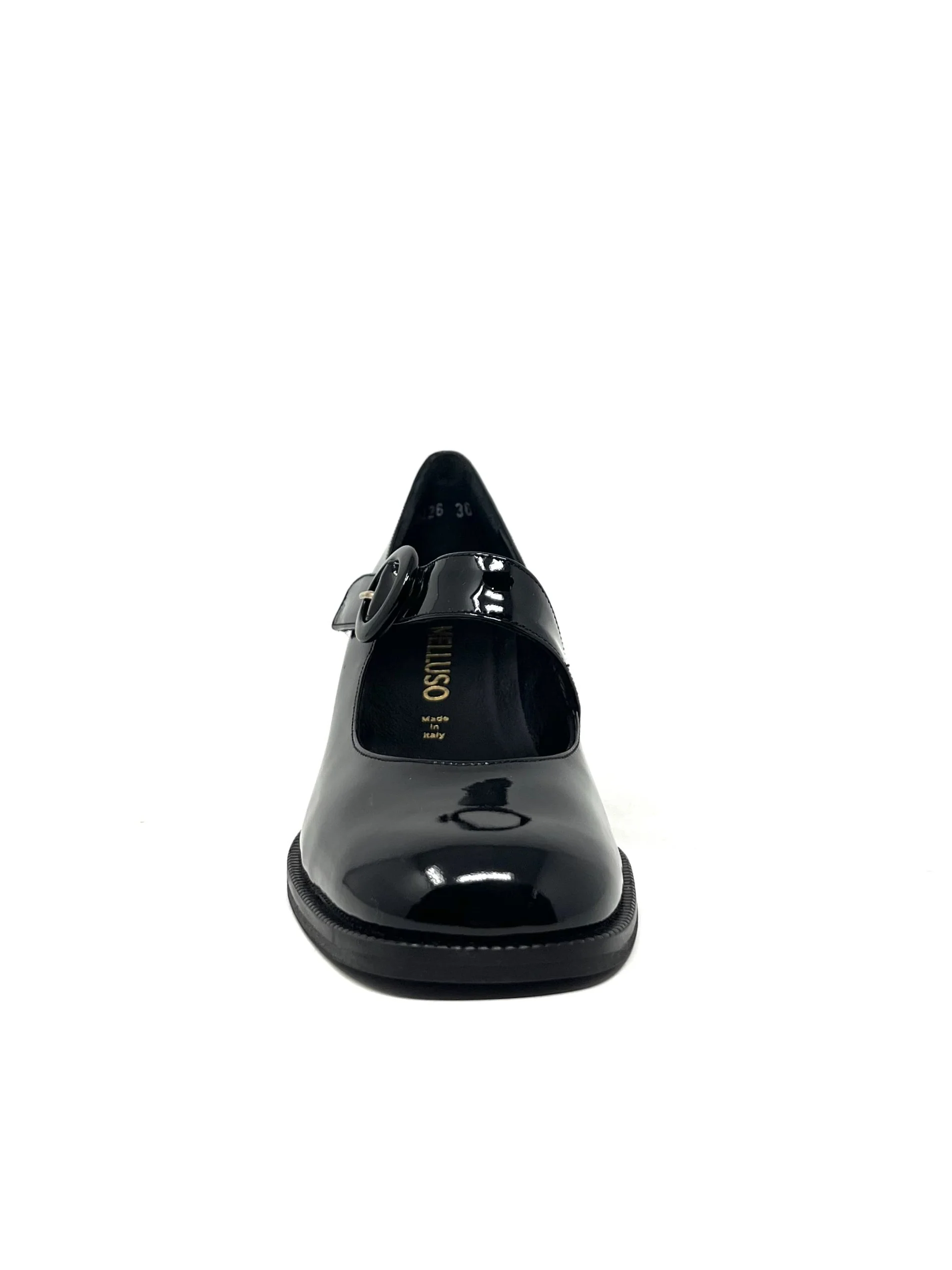 Decollete’ tacco largo vernice nero – V5426