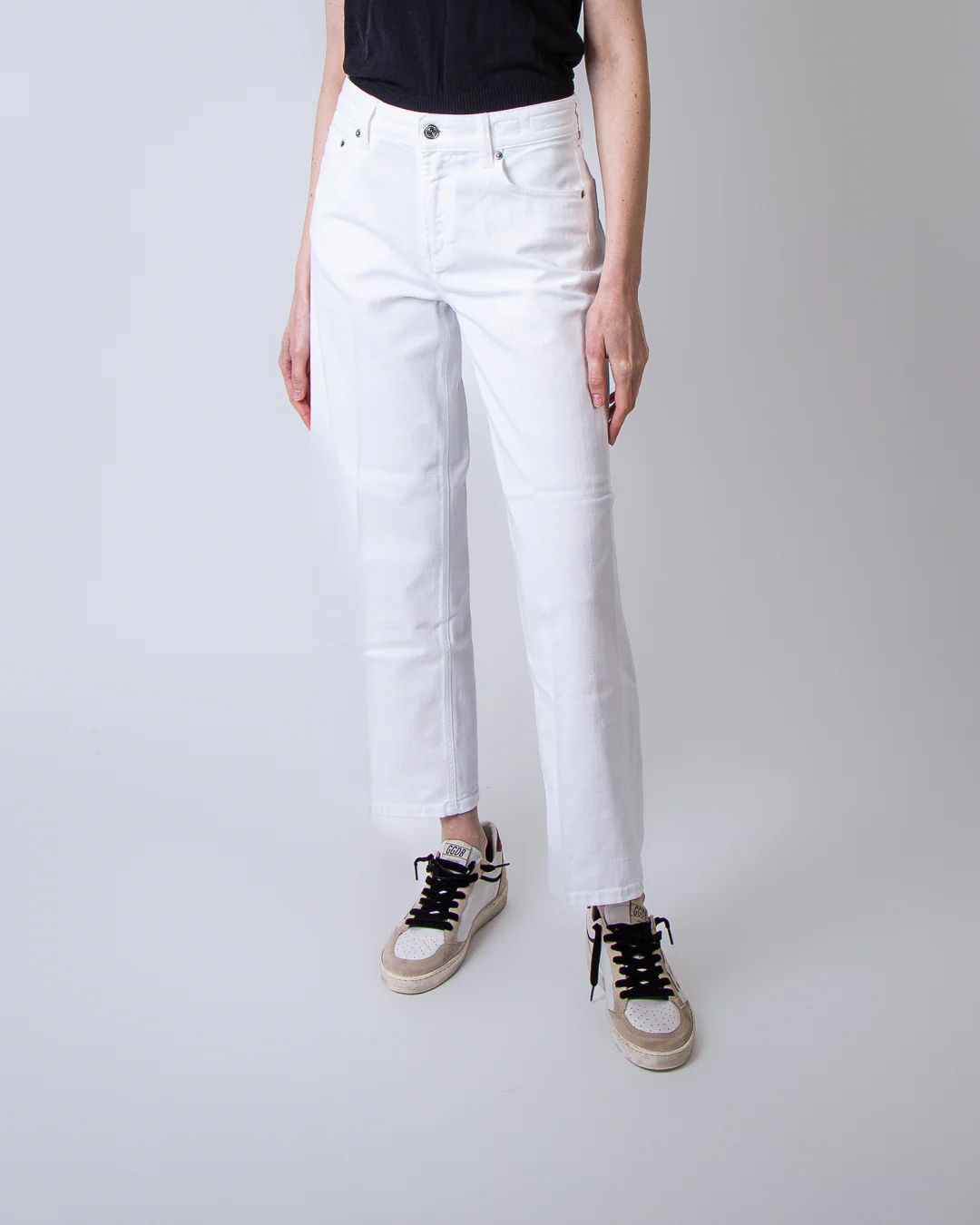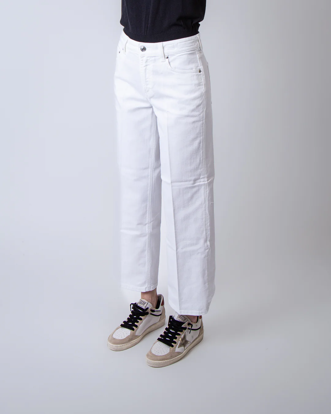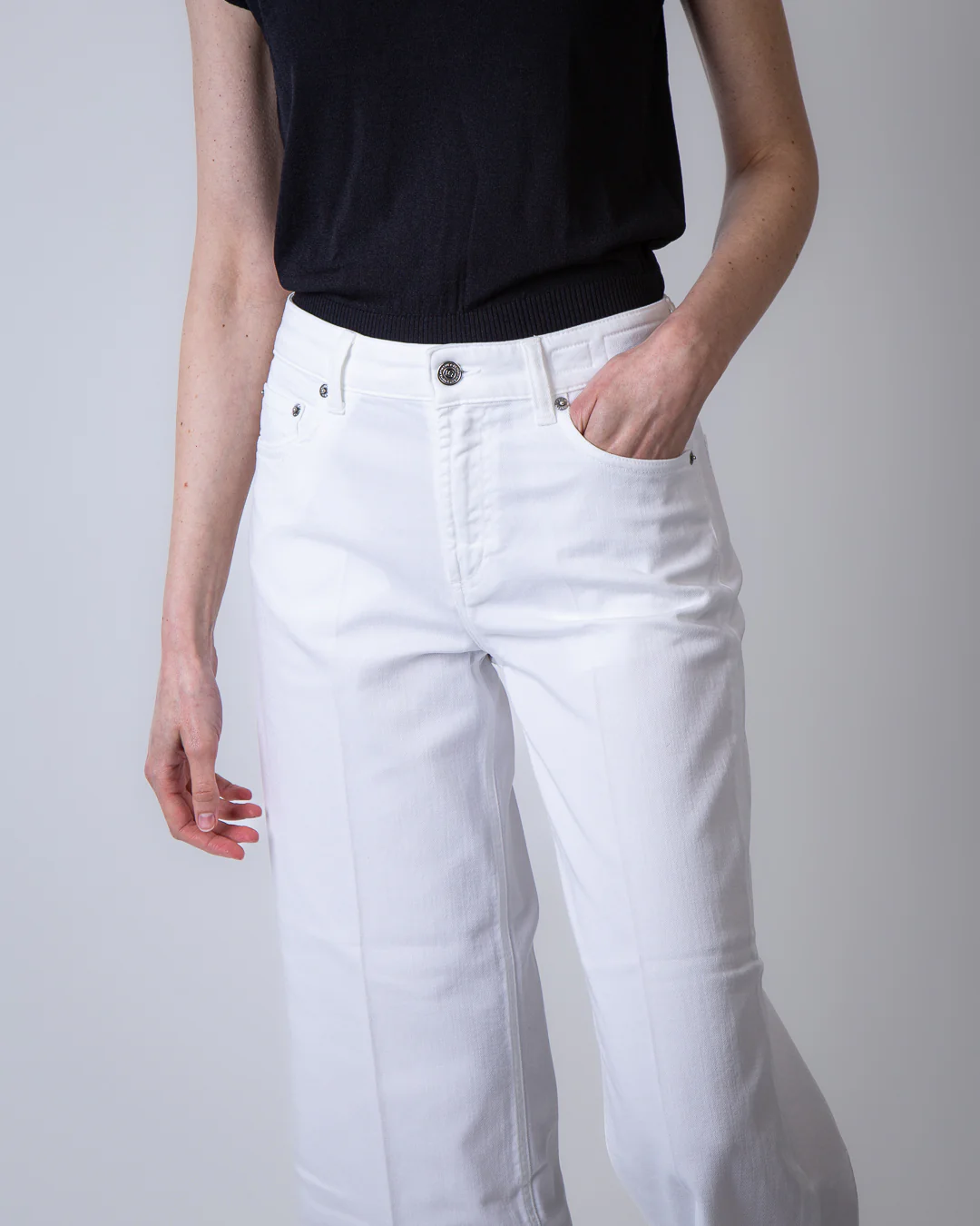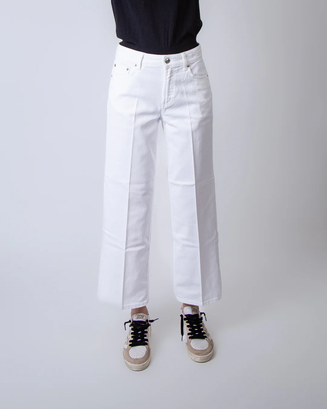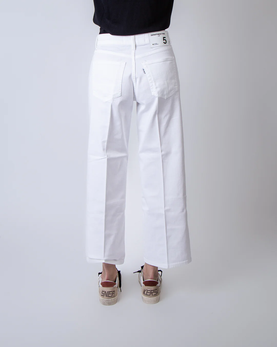 Department 5, jeans donna DP535 1DS0004 002 001 bianco, brea culotte. La modella รจ alta 175cm e indossa la taglia 26