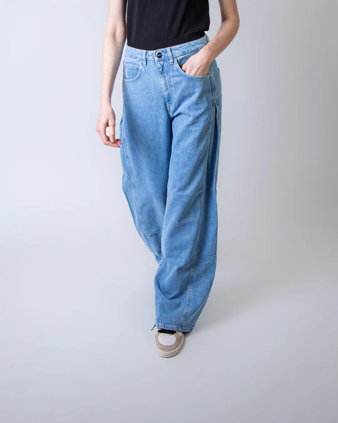 Dondup, jeans donna DP852 DFE332D MB9 800 blu, modello cristy. La modella รจ alta 175cm e indossa la taglia 26
