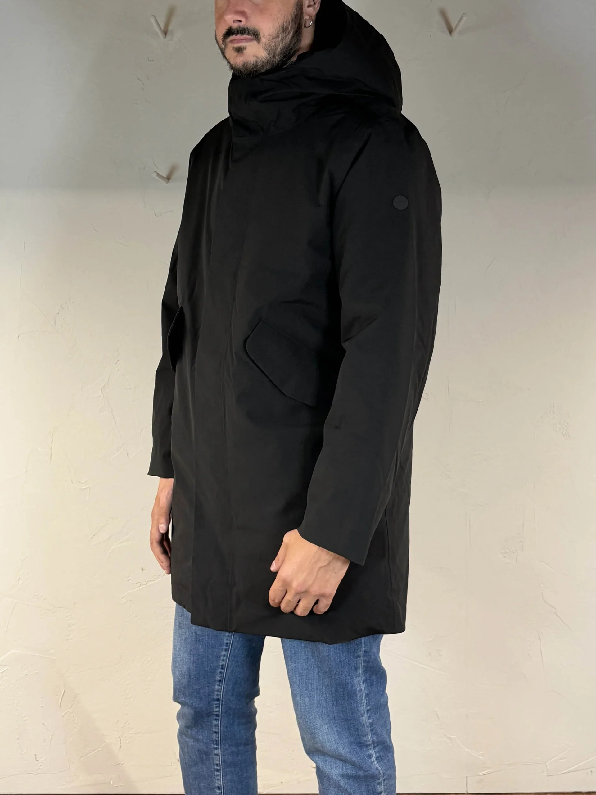 Codice Articolo: 331 186 Colore: black Parka foderato con imbottitura in Thermore ecologica e riciclata Tessuto PET poly 5k, elasticizzato e confortevole Impermeabile e antivento Chisura con zip e bottoni magnetici Tasche con patta e chiusura magnetica Cappuccio fisso regolabile Tasca interna Vestibilitร  regular Taglia indossata L (Modello: Altezza 188cm)