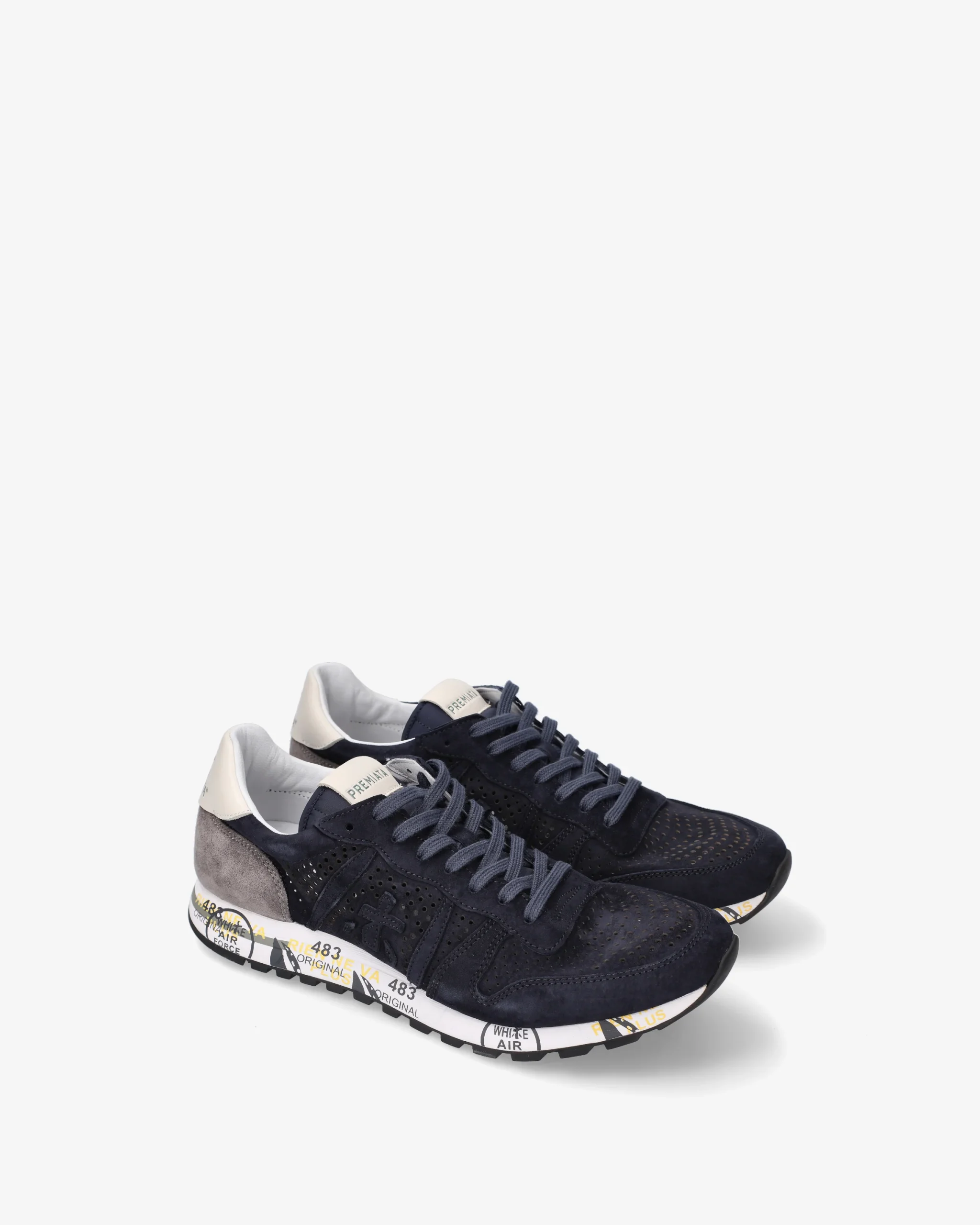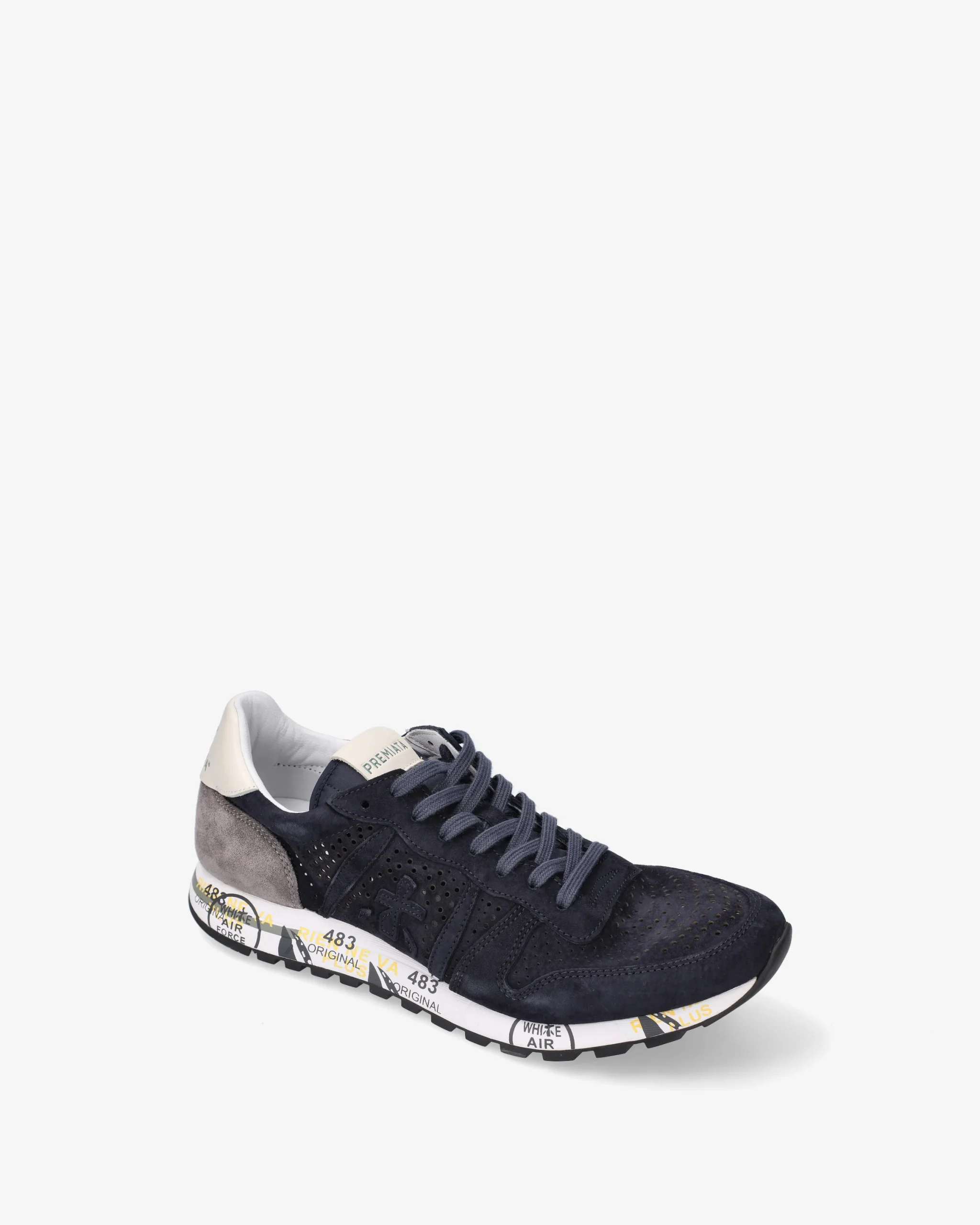 This men’s shoe stands out for its retro style, lightness, and flexibility. Made of leather, perforated on the toe and sides, in shades of blue. Enriched with details that make it new, simple, but different. Look enhanced by the unmistakable Premiata logo.