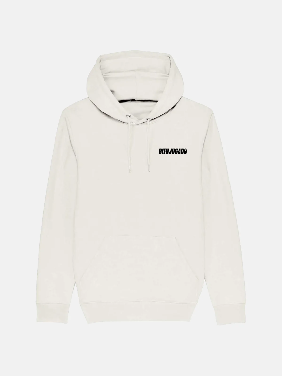 Felpa con cappuccio in french terry, cappuccio doppio strato, occhielli in metallo, cordini con punta in plastica, tasca a marsupio, cuciture laterali, fascia in vita e polsini in costina. Disponibile in 2 varianti di stampa