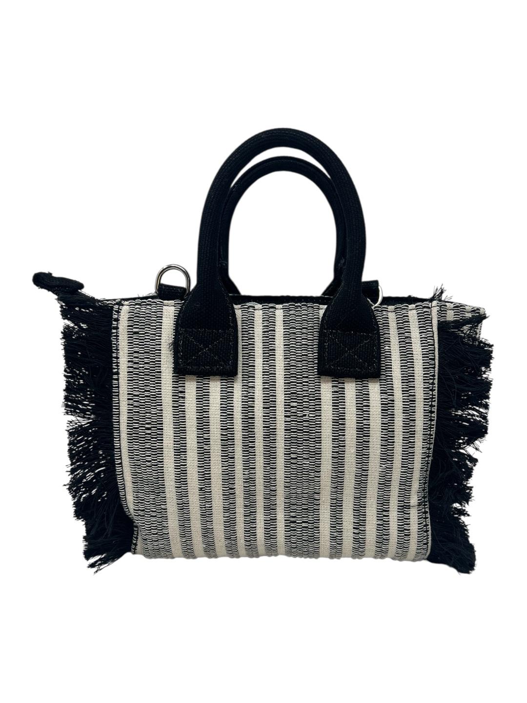 Elegante mini shopper in tessuto pregiato, impreziosita dal logo ricamato che contraddistingue la collezione firma. Le dimensioni compatte la rendono ideale per occasioni quotidiane e serate speciali, garantendo praticità senza compromessi stilistici. La lavorazione artigianale del ricamo assicura dettagli raffinati e durevoli nel tempo. Perfetta per chi ricerca un accessorio versatile che unisce funzionalità e distinzione estetica.