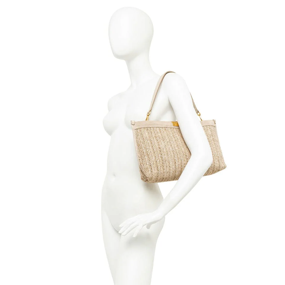 Maxi pochette Mariglod di Gianni Chiarini, realizzata in rafia di colore marrone cioccolato con bordi in camoscio in nuance. Apertura con cerniera in metallo, centrale. Interno foderato in tessuto beige. Munita di doppia tracolla in pelle, una più corta per portare la borsa a spalla e l’altra, regolabile, per portarla a tracolla.