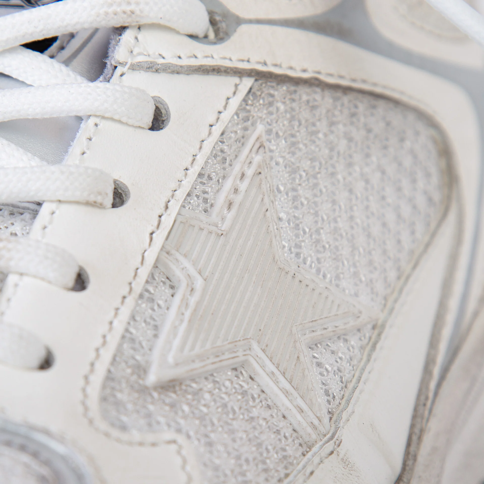 Tomaia in pelle e mesh di colore bianco