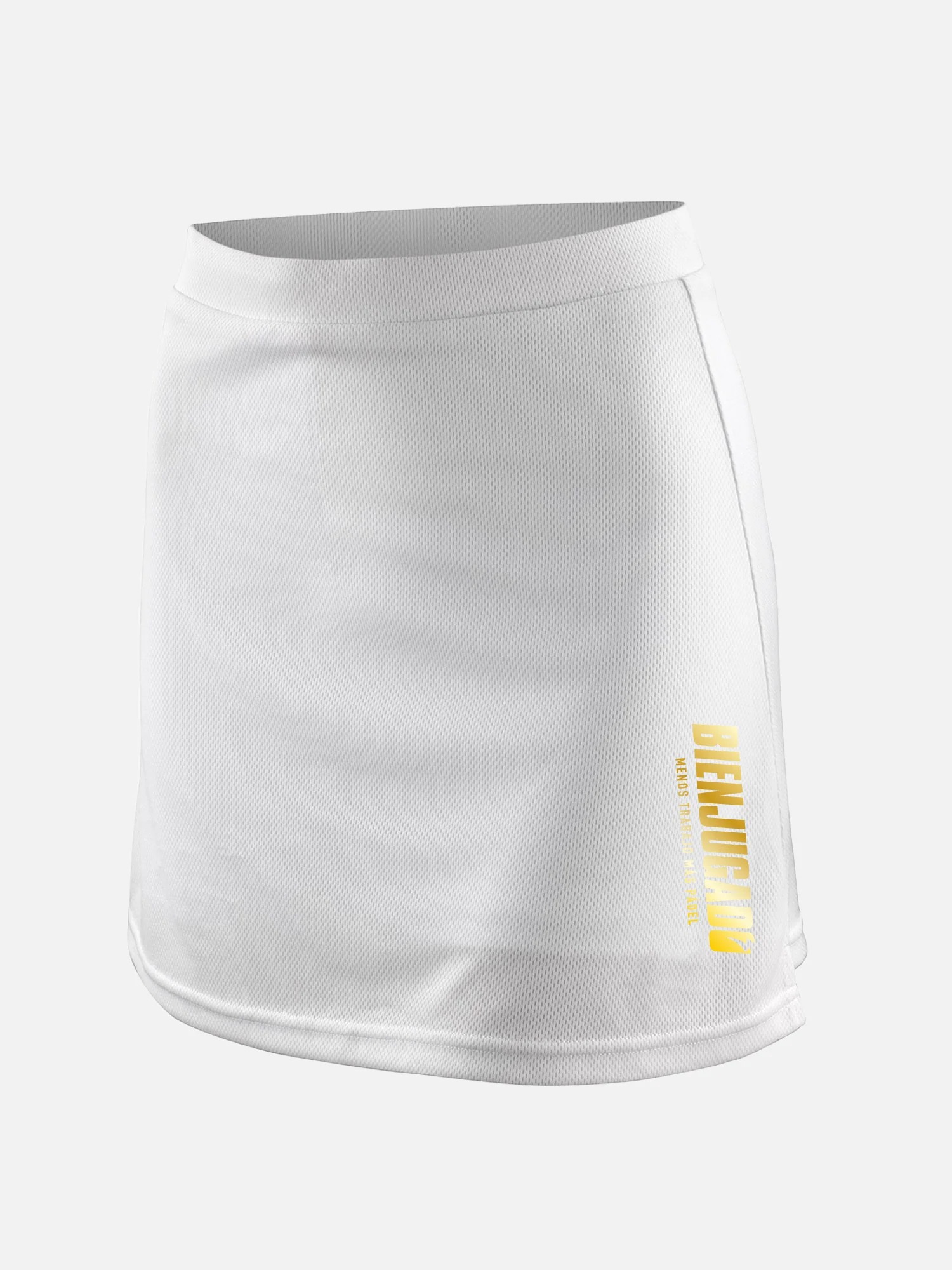 Tessuto traspirante ad asciugatura rapida in tessuto DryFit. Tessuto a trama waffle Cintura elastica piatta Pantaloncini sportivi integrati Cintura elastica piatta Vestibilitร regolare Gonna 100% poliestere. Pantaloncino: 95% cotone, 5% elastan.