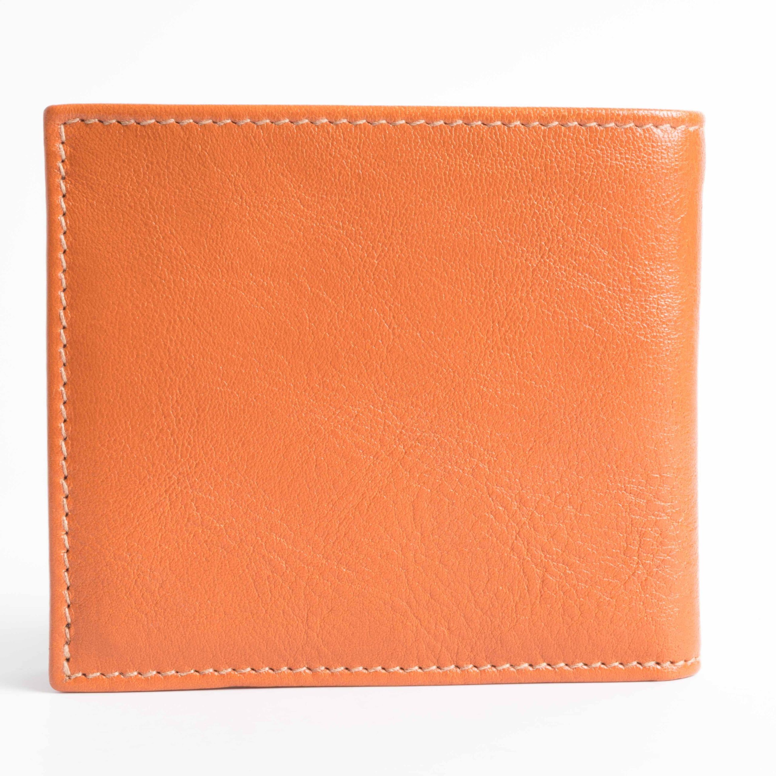 Portafoglio classico de Il Bisonte in pelle di vacchetta di color caramello. Apertura in orizzontale con scomparti interni, 2 slot per banconote e 6 slot per carte di credito. Tasca portamonete con chiusura a scatto in metallo brunito.