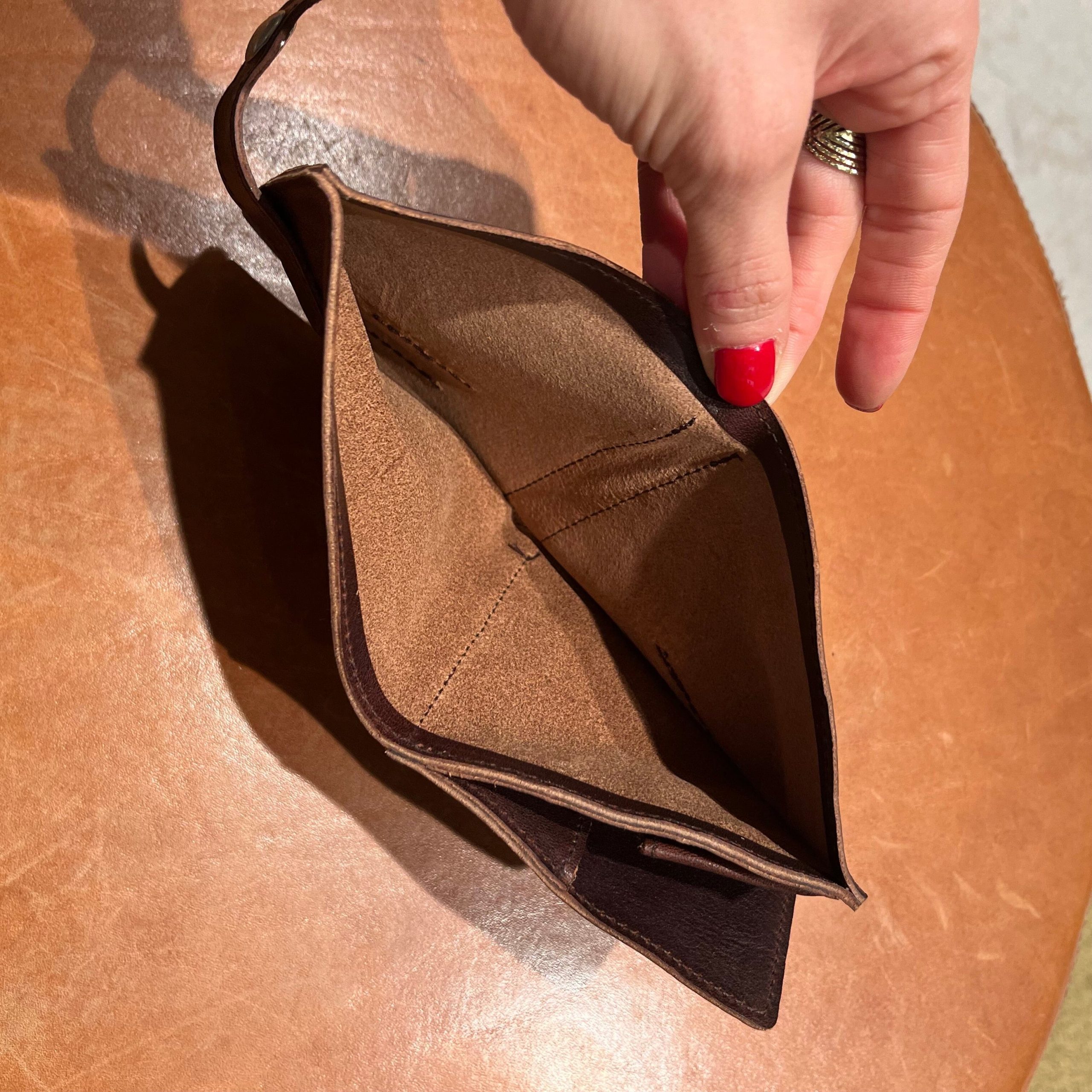 Collezione Continuativa Portafoglio da uomo Il Bisonte in pelle di vacchetta di colore marrone effetto vintage. Chiusura con bottone a pressione, tasca porta banconote sfoderata; all’interno 6 slot portacarte e porta documenti. Stemma del Brand sul lato frontale. Misure indicative: 10 cm x 9 cm x 2 cm Prodotto Artigianale Made in Italy