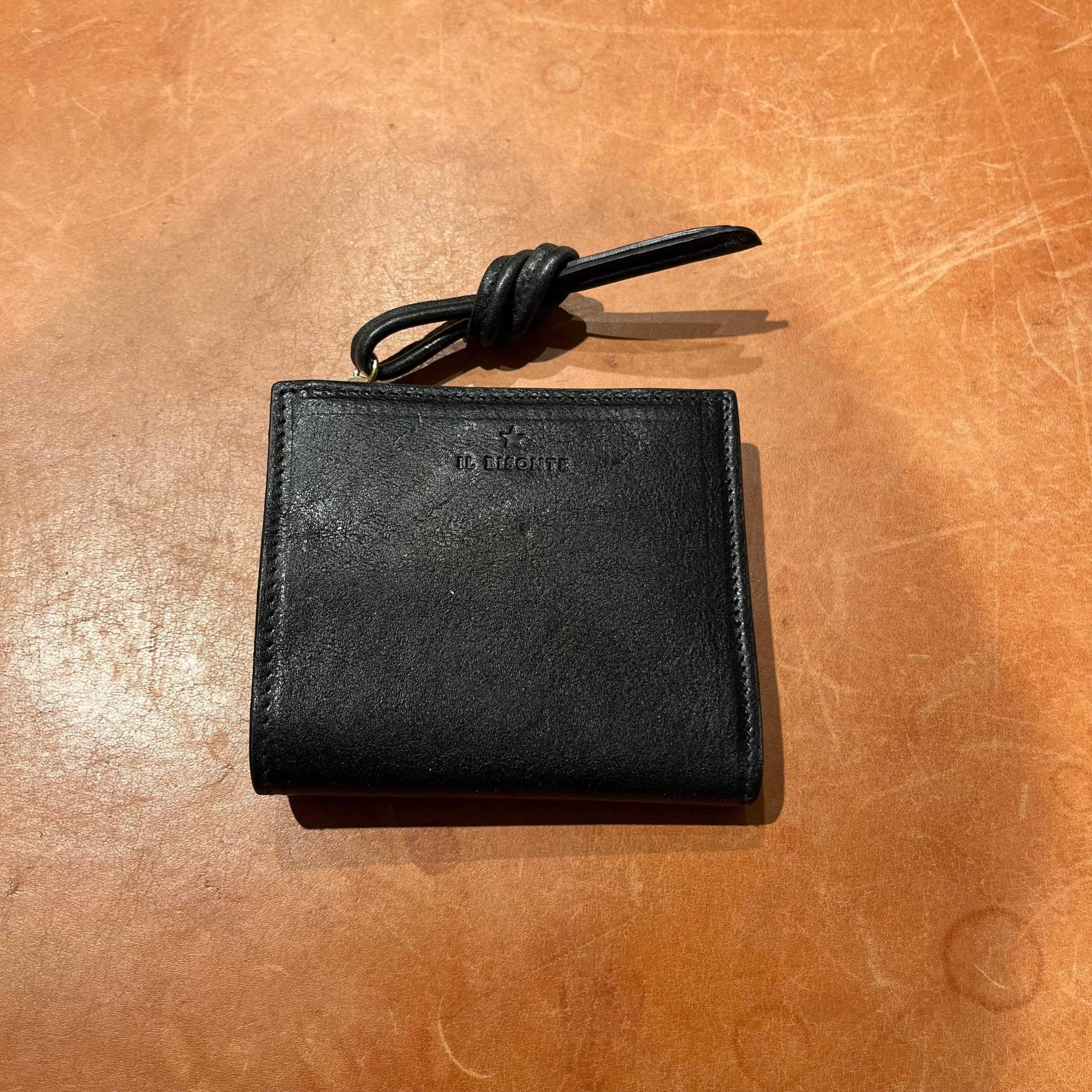 Collezione Continuativa Portafoglio de Il Bisonte, realizzato in pelle di vacchetta di color nero. Scomparti interni per carte e documenti e classico scomparto per contanti; tasca porta monete laterale con chiusura con zip. Misure indicative: 10 cm x 10.5 cm x 3 cm Prodotto Artigianale Made in Italy