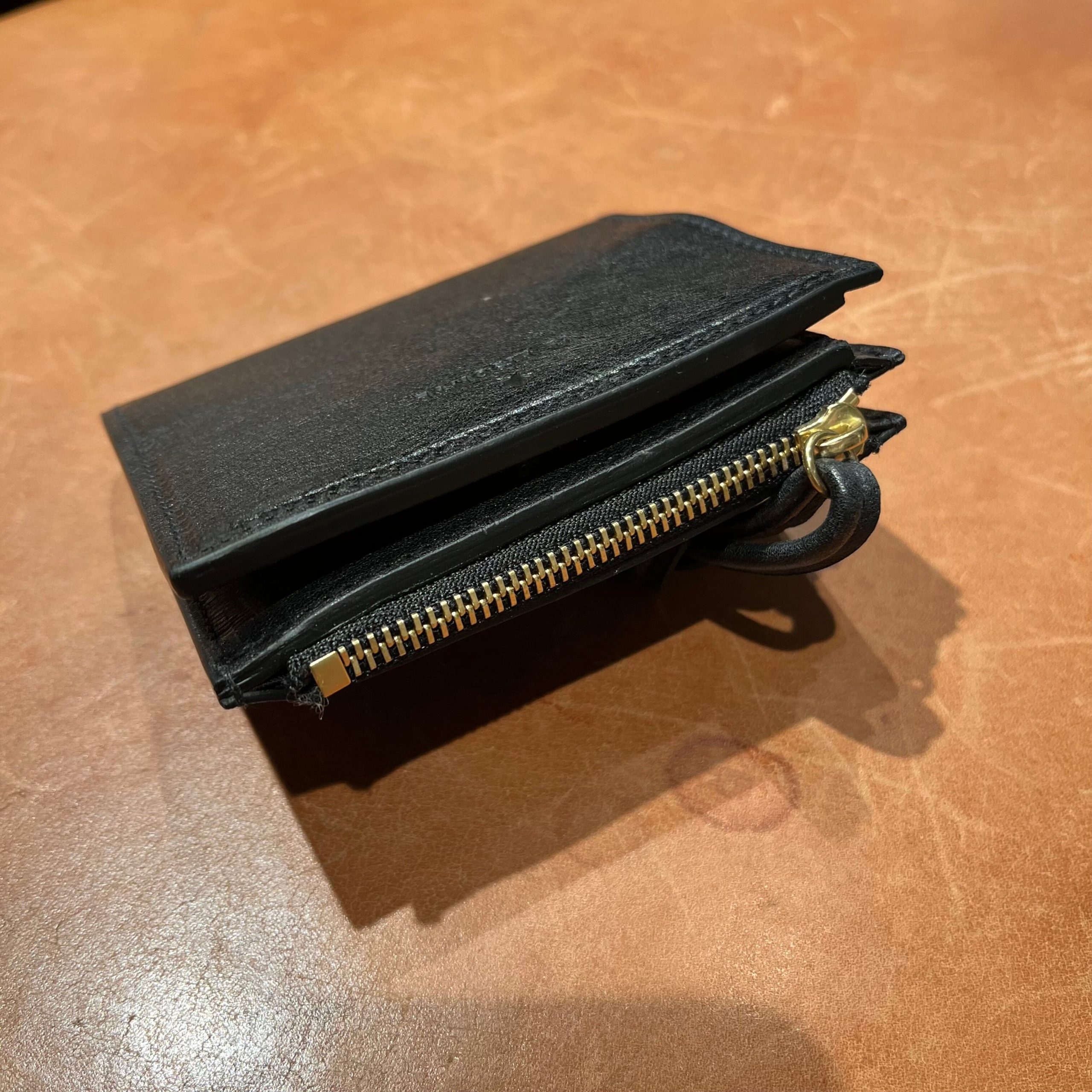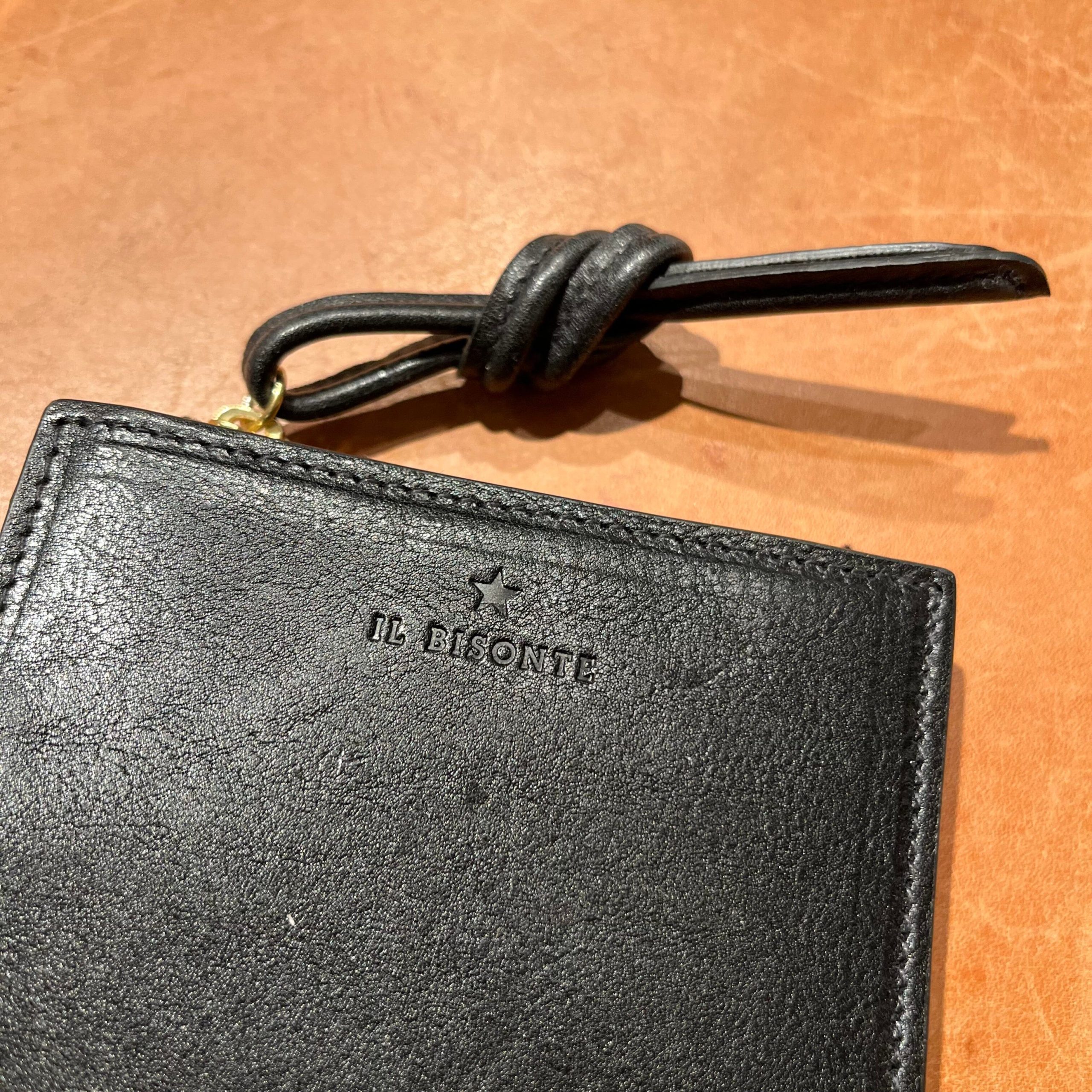 Portafoglio de Il Bisonte, realizzato in pelle di vacchetta di color nero. Scomparti interni per carte e documenti e classico scomparto per contanti; tasca porta monete laterale con chiusura con zip.