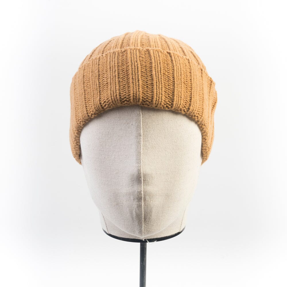 Berretto realizzato da In the Box a coste larghe in morbidissima lana e caschemire di colore ocra.